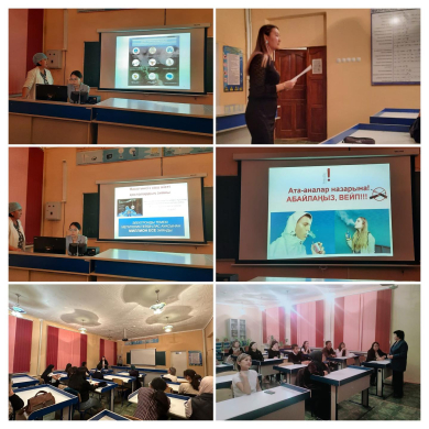 По повестке дня мед сестра Жазибекова Саягуль Саменовна предоставила информацию по профилактике наркомании и вреду электронных сигарет.Директор школы Балапанова Г. Ж. рассказала родителям о посещаемости,успеваемости учащихся, о внутреннем порядке школы.Классный руководитель Торебекова С. С. дала информацию по успеваемости учащихся класса,подготовке кбт.В конце собрания психолог Журчинова Ж. Б. провела опрос родителей и оказала психологическую помощь. Родители задали несколько вопросов и получили ответы.