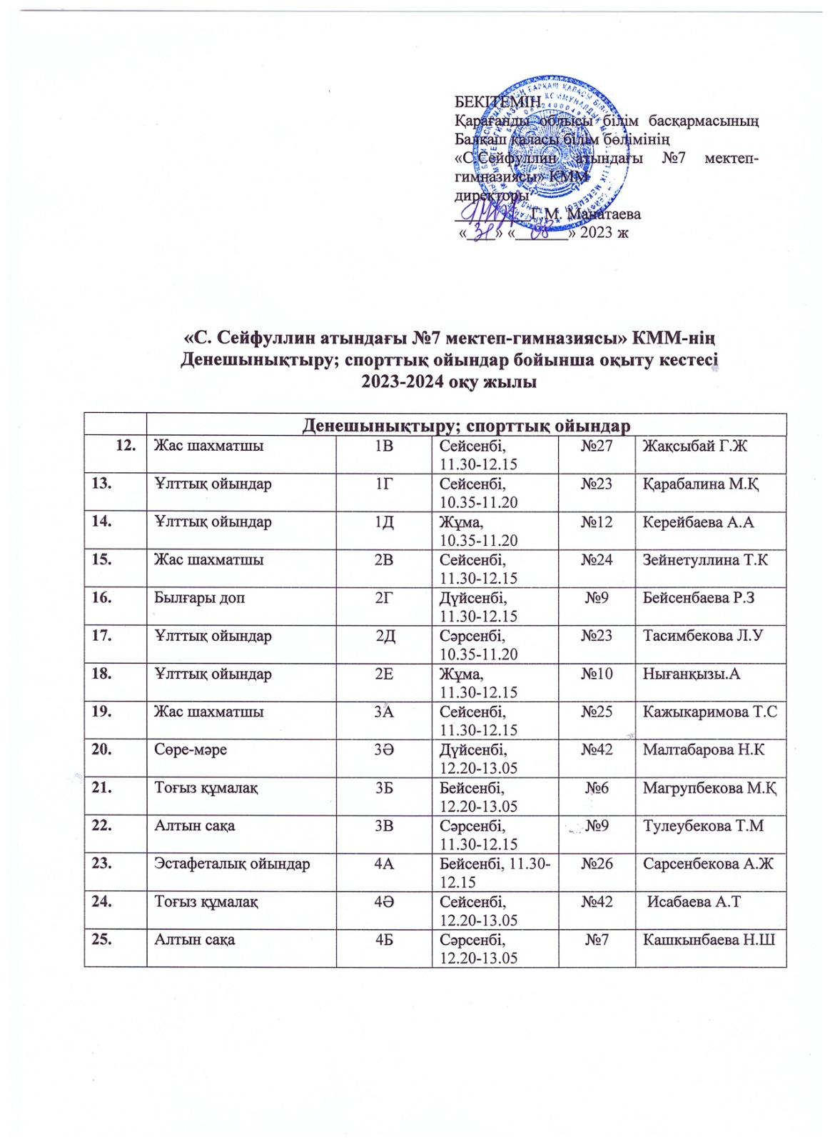 Сабақ кестесі 2023-2024 оқу жылы