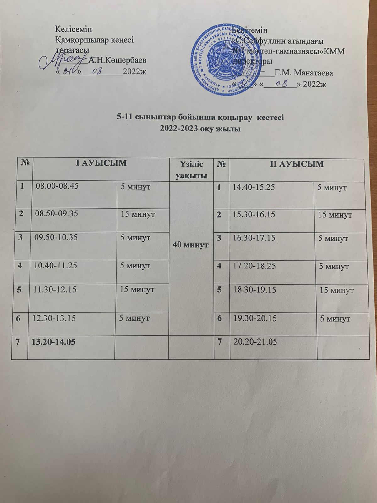Қоңырау кестесіҚоңырау кестесі |