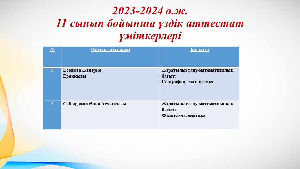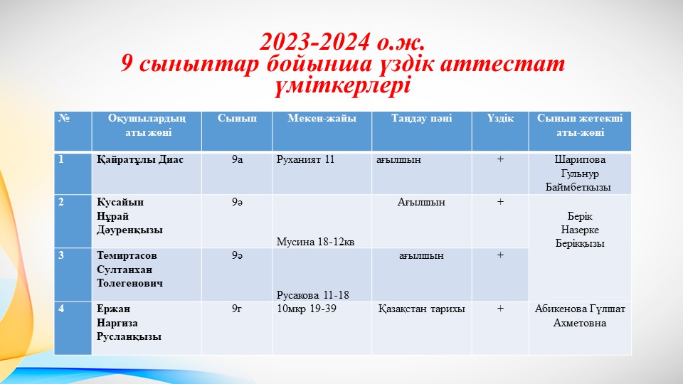 2023-2024 оқу жылы "Алтын белгі" атағына үміткерлер2023-2024 оқу жылы "Алтын белгі" атағына үміткерлер |