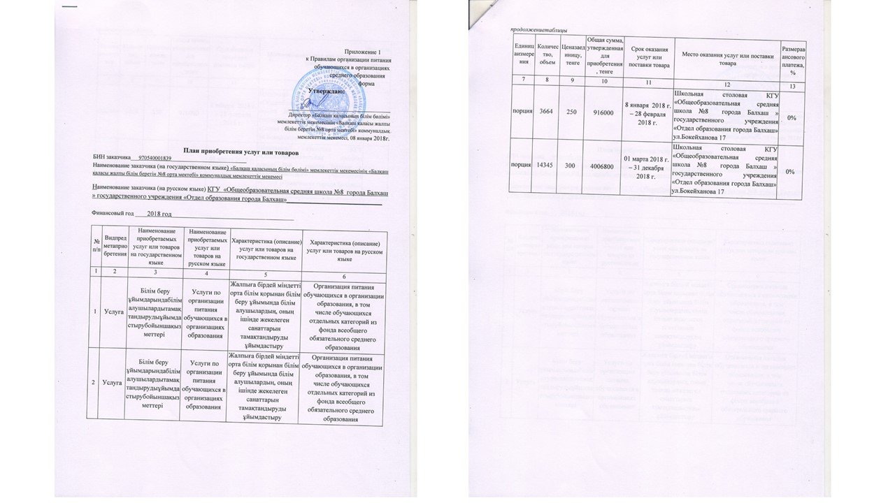 2018 жылы оқушыларға тамақтандыру қызметтерін көрсету жоспарын бекіту туралы бұйрық2018 жылы оқушыларға тамақтандыру қызметтерін көрсету жоспарын бекіту туралы бұйрық |