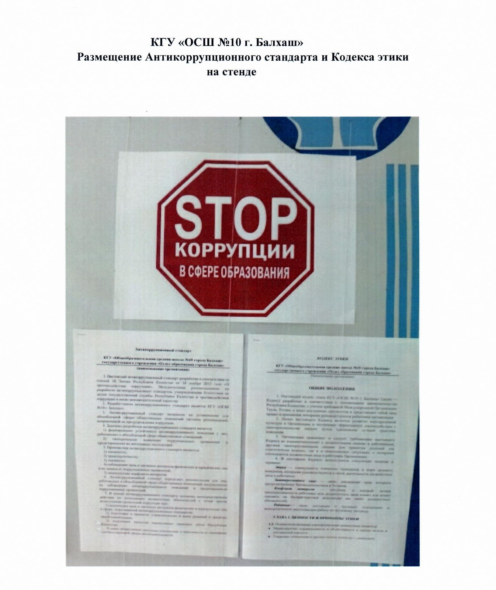 Сыбайлас жемқорлыққа қарсы стандартКГУ «Общеобразовательная средняя школа №10 города Балхаш» государственного учреждения «Отдел образования города Балхаш» |
