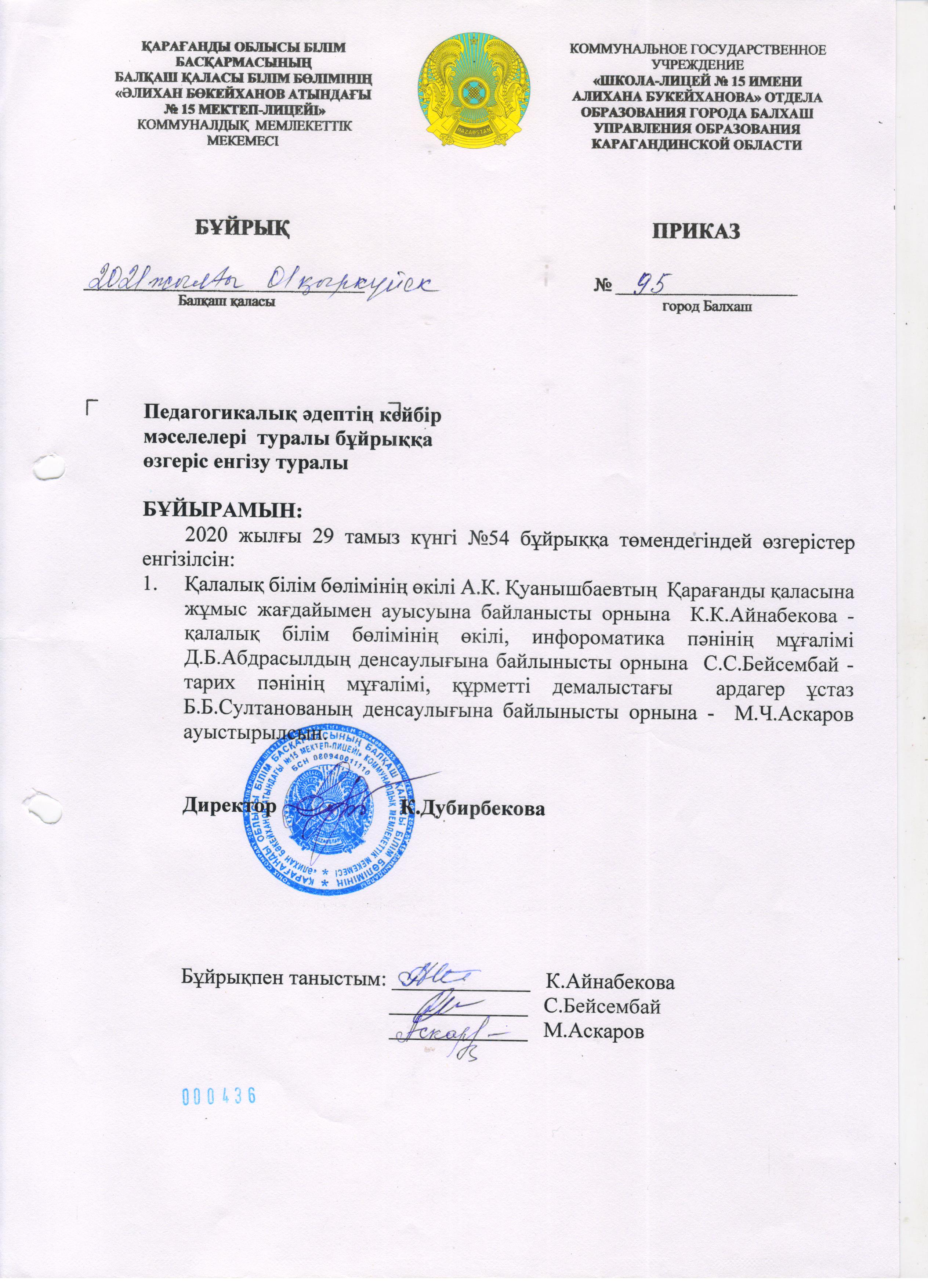 Педагогикалық әдептің кейбір мәселелері туралы бұйрыққа өзгеріс енгізу туралыПедагогикалық әдептің кейбір мәселелері туралы бұйрыққа өзгеріс енгізу туралы |