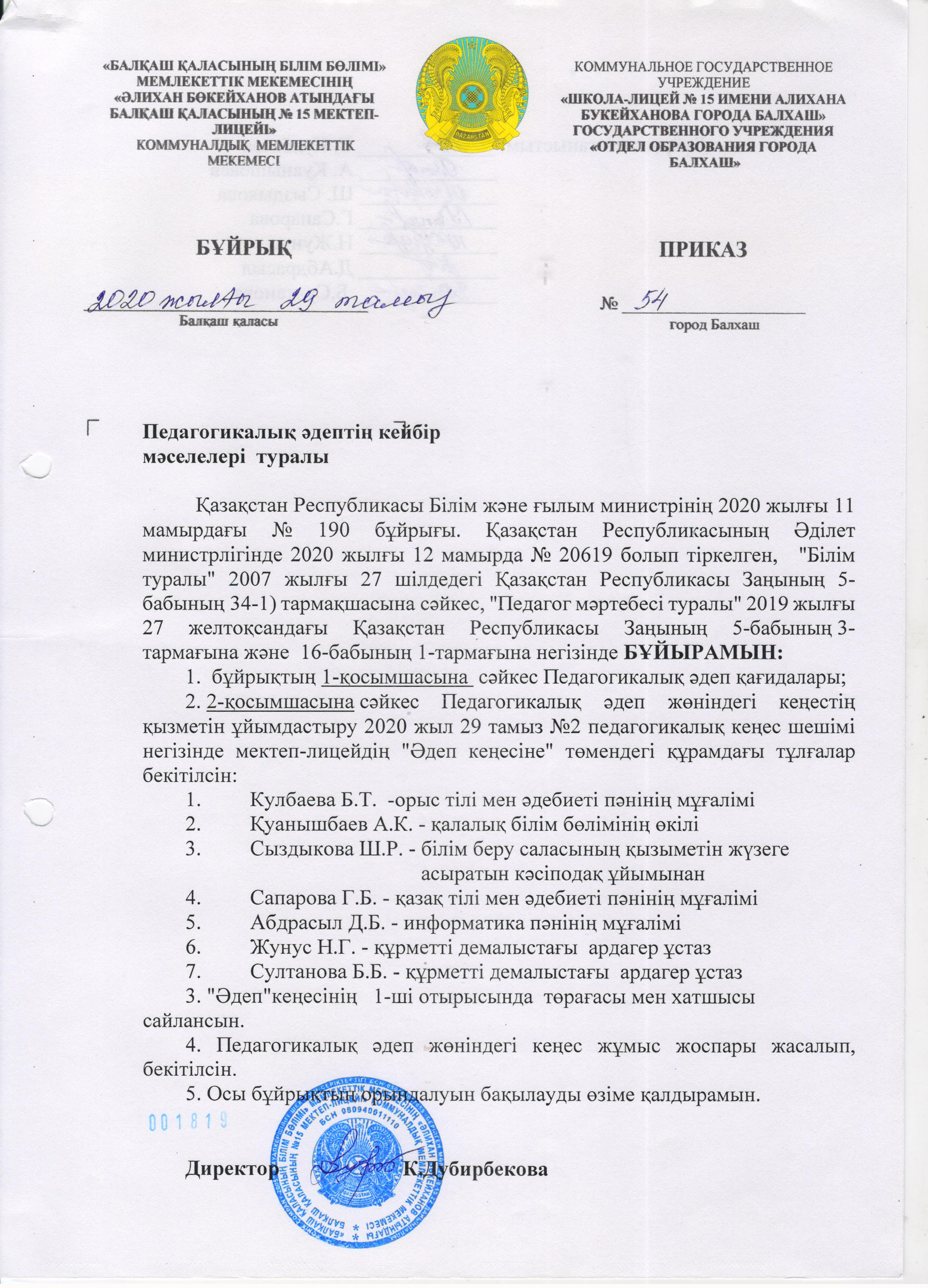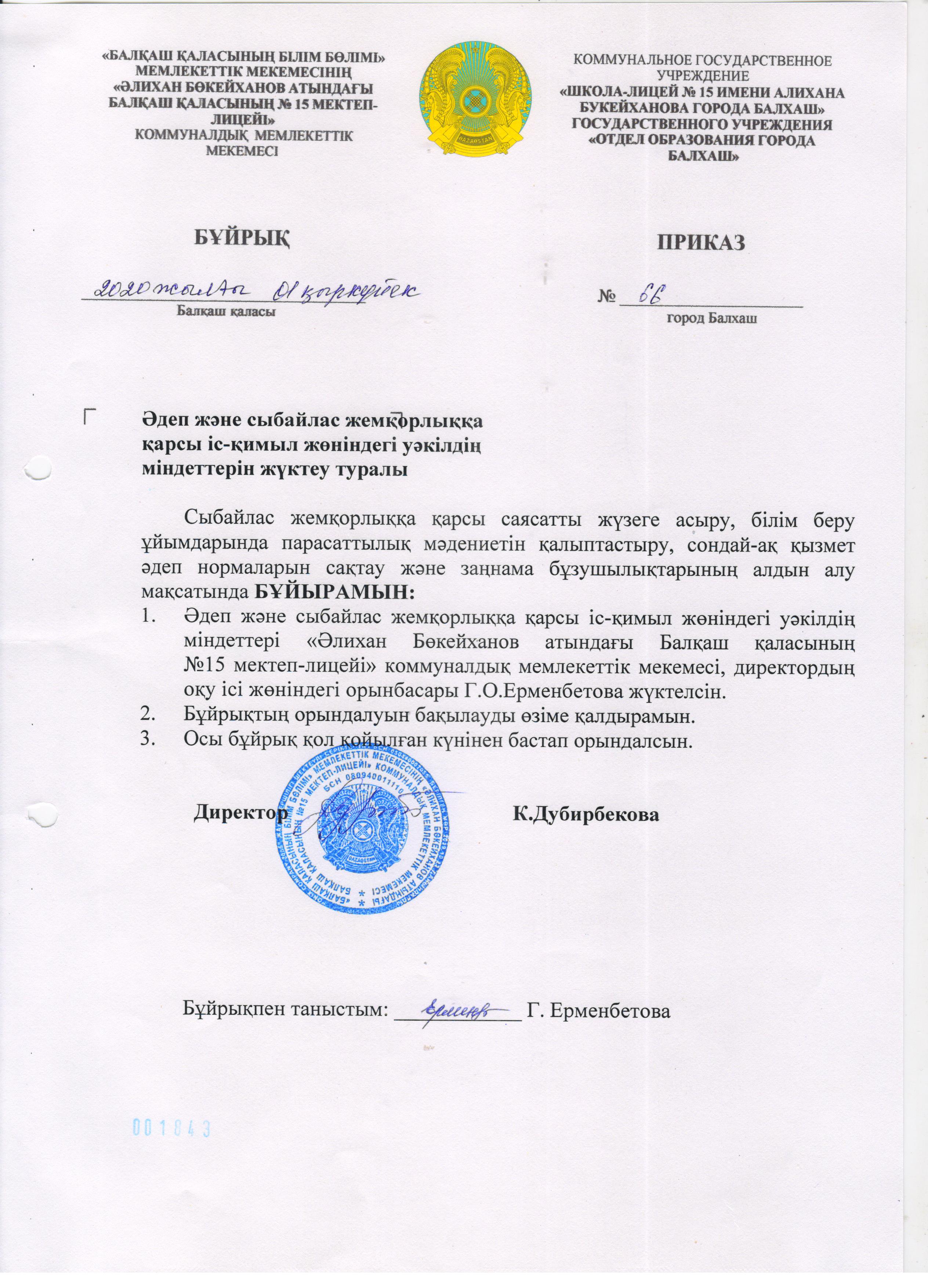 Қазақстан Республикасының 2015-2025 жылдарға арналған сыбайлас жемқорлыққа қарсы стратегиясын іске асыру және көлеңкелі экономикаға қарсы іс-қимылды іске асыру бойынша Қарағанды облысы білім басқармасының Балқаш қаласы білім бқлімінің «Әлихан Бөкейханов а