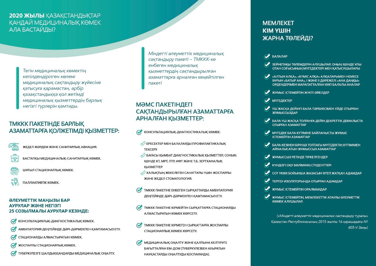 2020 жылы қазақстандықтар қандай медициналық көмек ала бастайды?2020 жылы қазақстандықтар қандай медициналық көмек ала бастайды? |