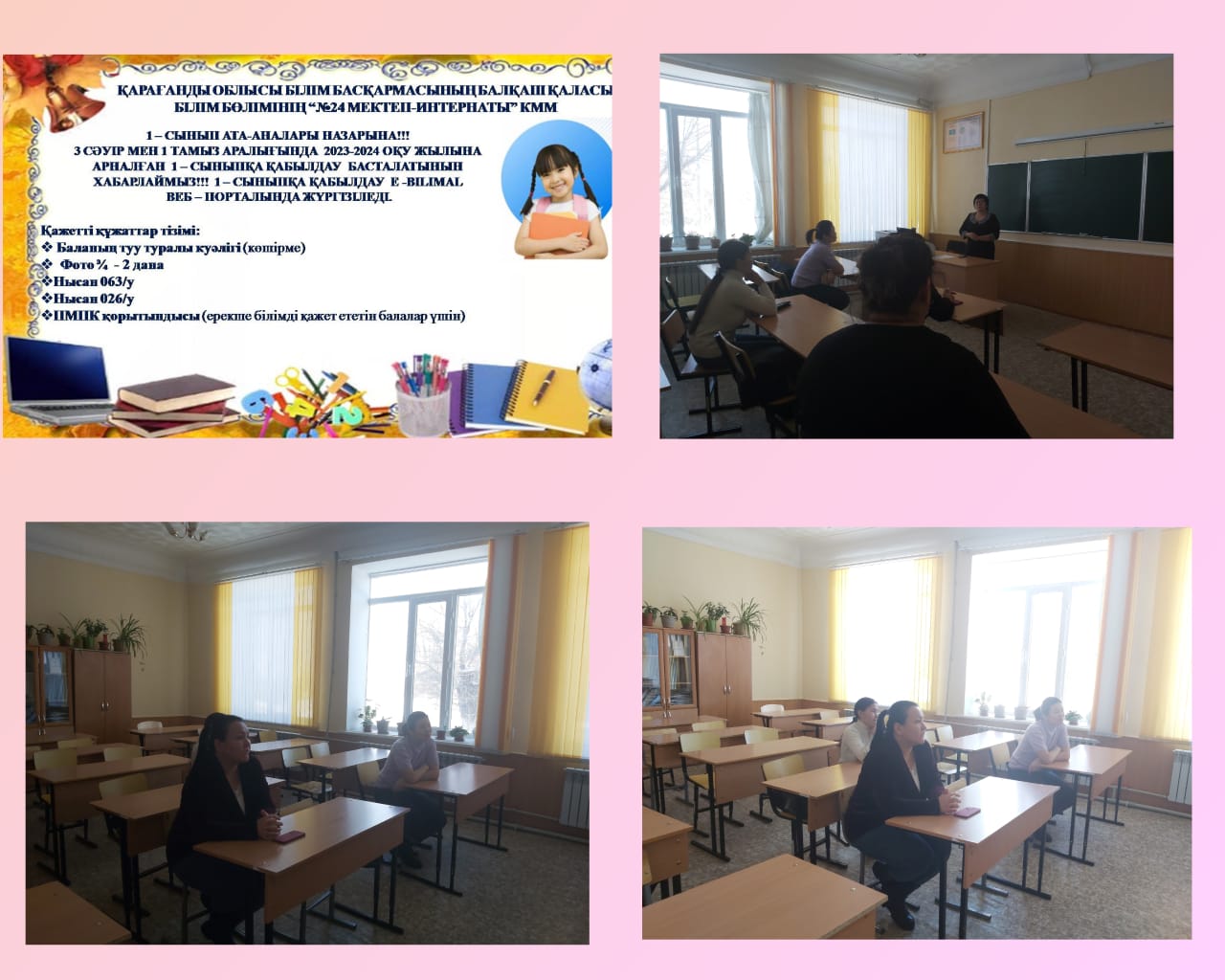 1 сыныпқа қабылдау туралы14.02 күні Қарағанды облысы білім басқармасының Балқаш қаласы білім бөлімінің "#24 мектеп-интернаты" КММ-нің мектепалды даярлық сыныбында ата-аналар жиналысы өткізілді. Жиналыс барысында мектеп директоры Мусина А.К ата-аналарды 1 сыныпқа қабылдау туралы ақпарат бере отырып, керекті құжаттар тізімімен таныстырды. Ата-аналар тарапынан қойылған сұрақтарға жауап берді |