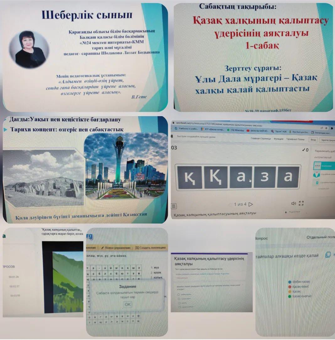 «Тарих сабақтарында білім сапасын толықтыру бойынша әдістемелік ұсынымдар"Қарағанды облысы білім басқармасының оқу-әдістемелік орталығының ұйымдастыруымен «Күздік мектеп-2022» облыстық пән мұғалімдеріне арналған онлайн курста, Балқаш қаласы білім бөлімінің «№24 мектеп-интернаты»КММ тарих пәні мұғалімі, педагог-сарапшы, Шолакова Лаззат Бодыковна өз іс -тәжірибесімен бөлісті. Курстың тақырыбы: «Тарих сабақтарында білім сапасын толықтыру бойынша әдістемелік ұсынымдар". "Білім сапасының мәселелері. Нәтижеге жету әдістері"-деп аталады. Мақсаты: облыстық мектептің пән мұғалімдерінің бір-бірімен тәжірибе алмасу болып табылады. «Алдымен өзіңді-өзің үйрет, сонда ғана басқалардан үйрене аласың, өзгелерге үйрете аласың» - дегендей В.Гете .Пән мұғалімі 6 сыныпқа арналған Қазақстан тарихы пәні бойынша: «Қазақ халқының қалыптасуының аяқталуы» тақырыбында сабақтың сапасына ықпал ететін қолданылған әдіс-тәсілдерін ортаға салып, курсқа қатысушы мұғалімдермен бірлесе практикалық жұмыс жасата отырып өзінің іс тәжрибесімен ой бөлісті . |