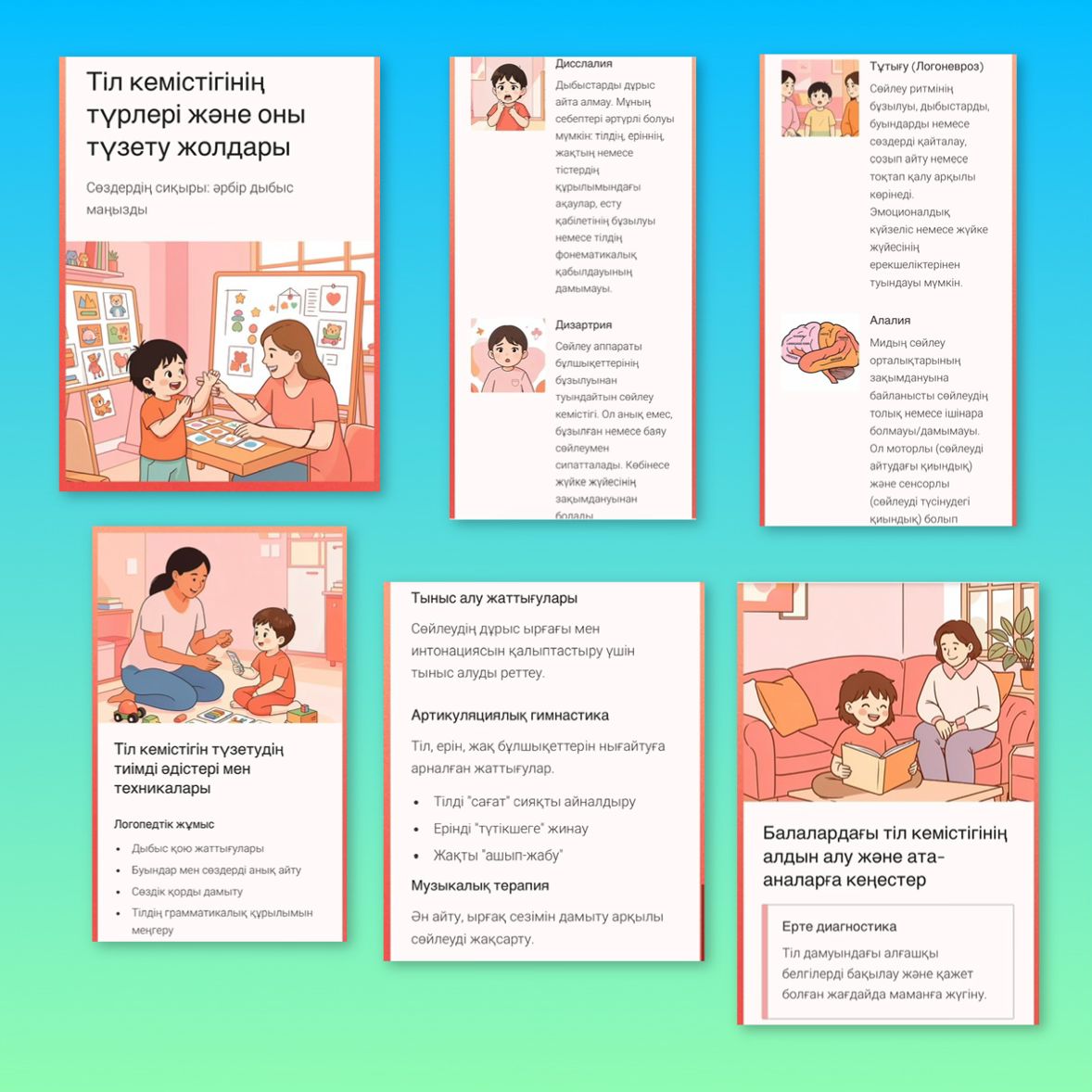 Виды речевых нарушенийНарушение звукопроизношения (дислалия) Дизартрия Заикание (логоневроз) Задержка общего речевого развития (ОНР) Афазия Алалия Способы коррекции ✨ 1. Работа с логопедом — самый эффективный метод. Постановка правильного звукопроизношения с помощью специальных упражнений. ✨ 2. Артикуляционная гимнастика Упражнения для языка, губ и челюсти: «лошадка», «часы», «чашечка», «змейка» и др. ✨ 3. Дыхательные упражнения Особенно важны при заикании (надувание шарика, медленный выдох). ✨ 4. Развитие мелкой моторики Мелкая моторика связана с речью: мозаика, лепка из пластилина, нанизывание бус. ✨ 5. Обогащение словарного запаса Чтение книг, составление рассказов по картинкам, игры «вопрос–ответ». ✨ 6. Правильная речевая среда дома Не кричать на ребёнка, не ругать при исправлении, показывать пример — говорить медленно и чётко. |