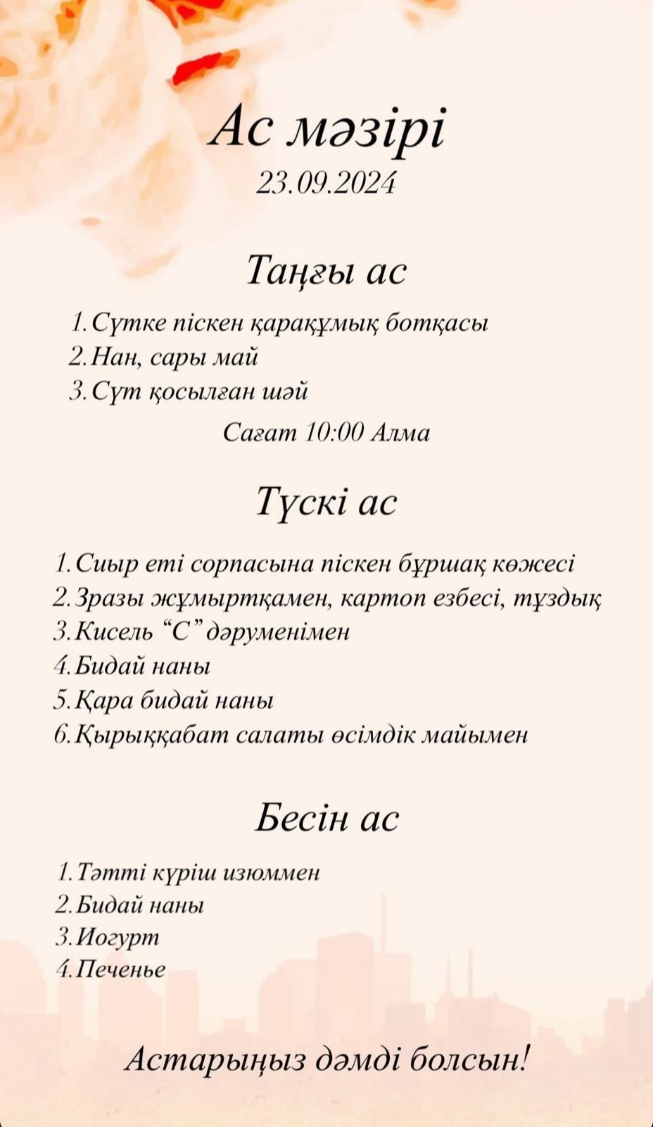 Ас мәзірі 25.09.2024Астарыңыз дәмді болсын! |