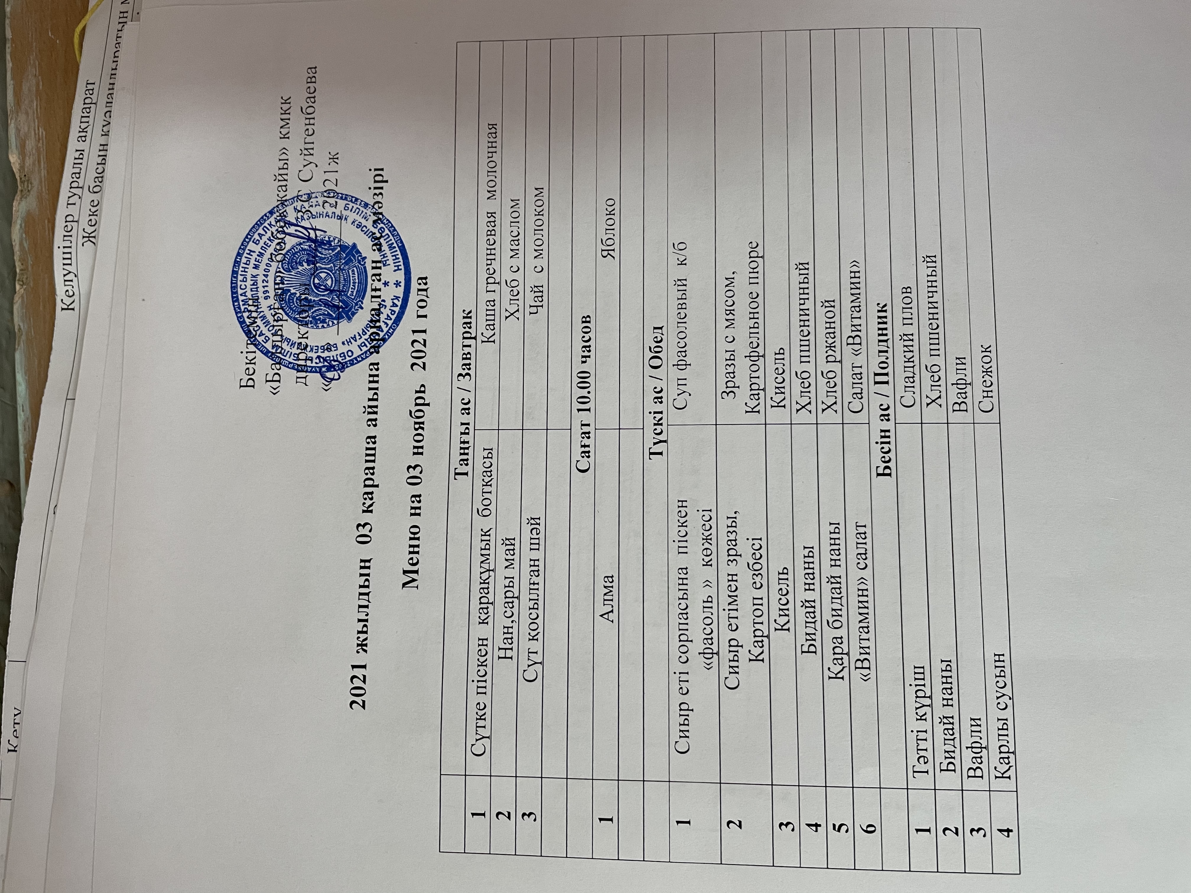 03.11.2021Меню на 03 ноябрь 2021года |