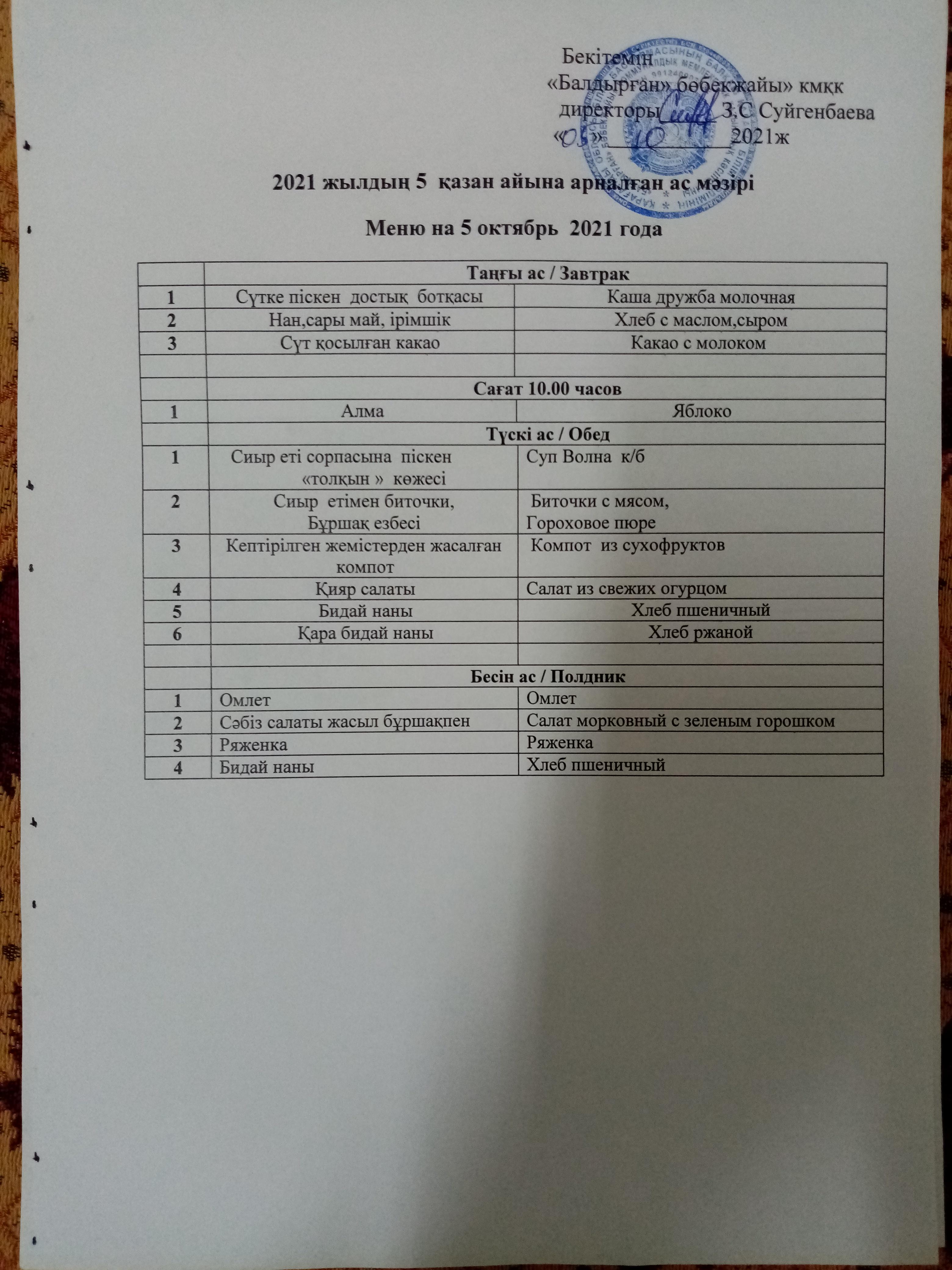 05.10.2021ж2021 жылдың 5 казан айына арналған ас |