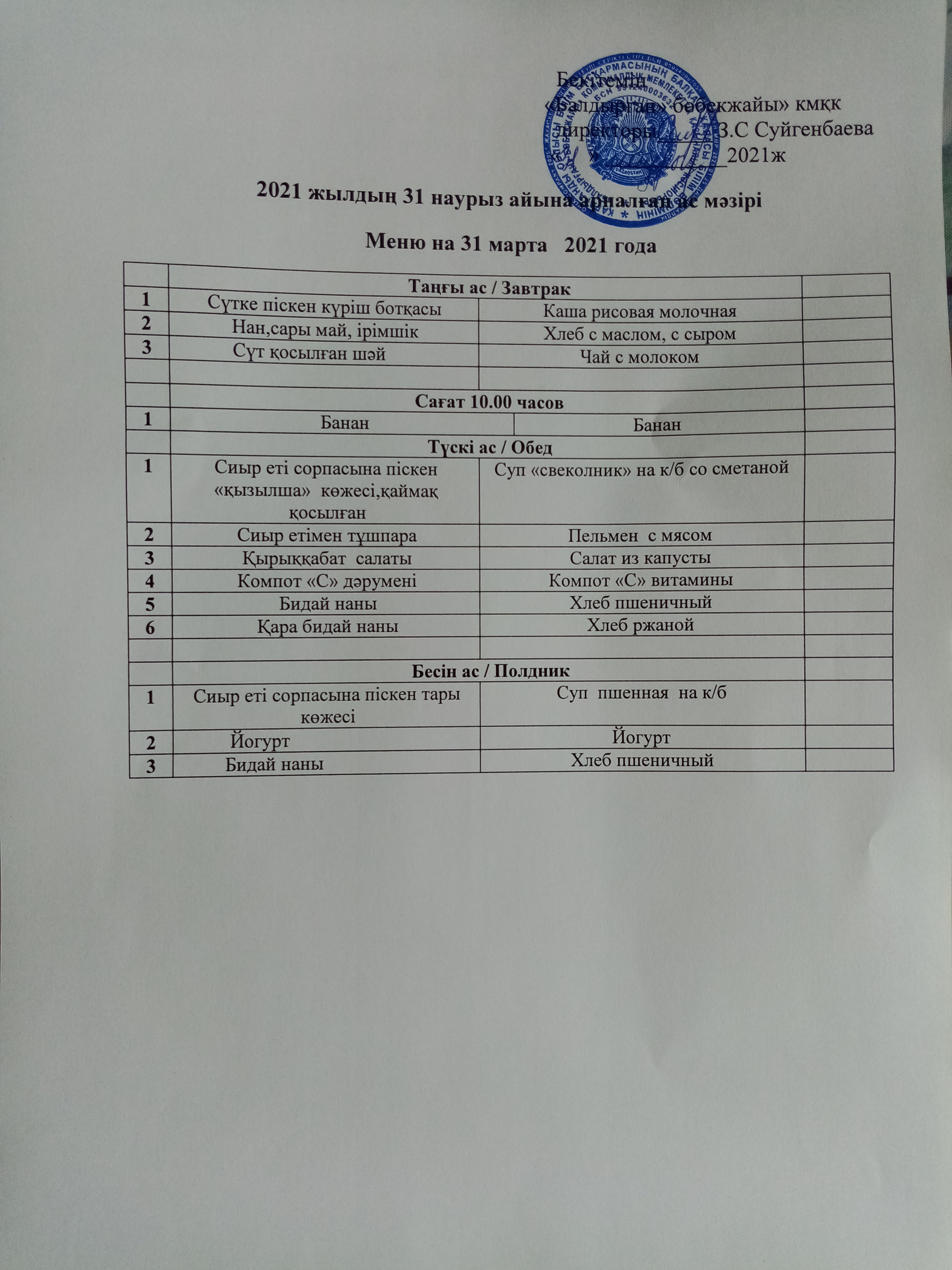 31. 03.2021ж2021 жылдың 31 наурыз айына арналған ас мәзірі |