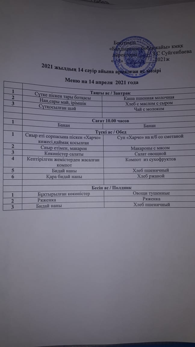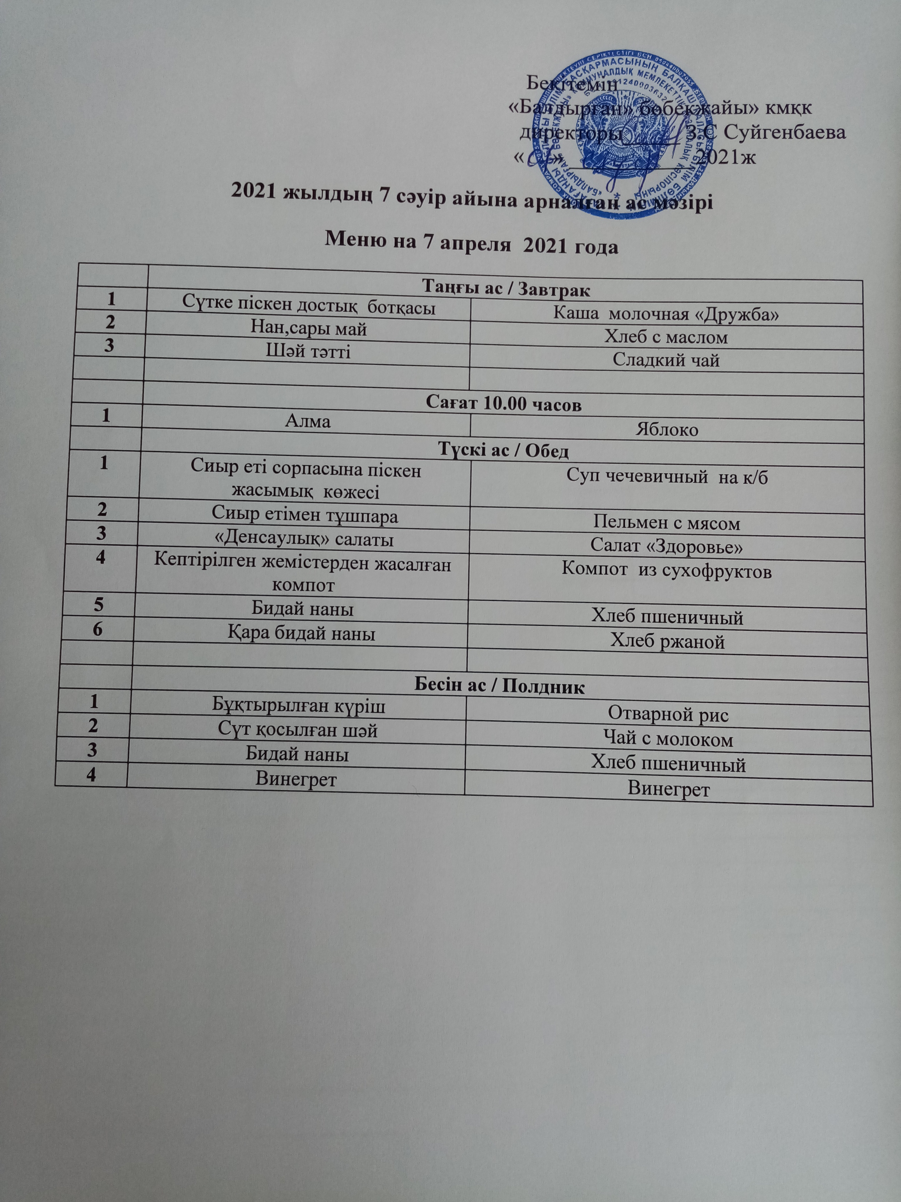 07.04.2021ж2021 жылдың 7 сәуiр айына арналған ас мәзірі |