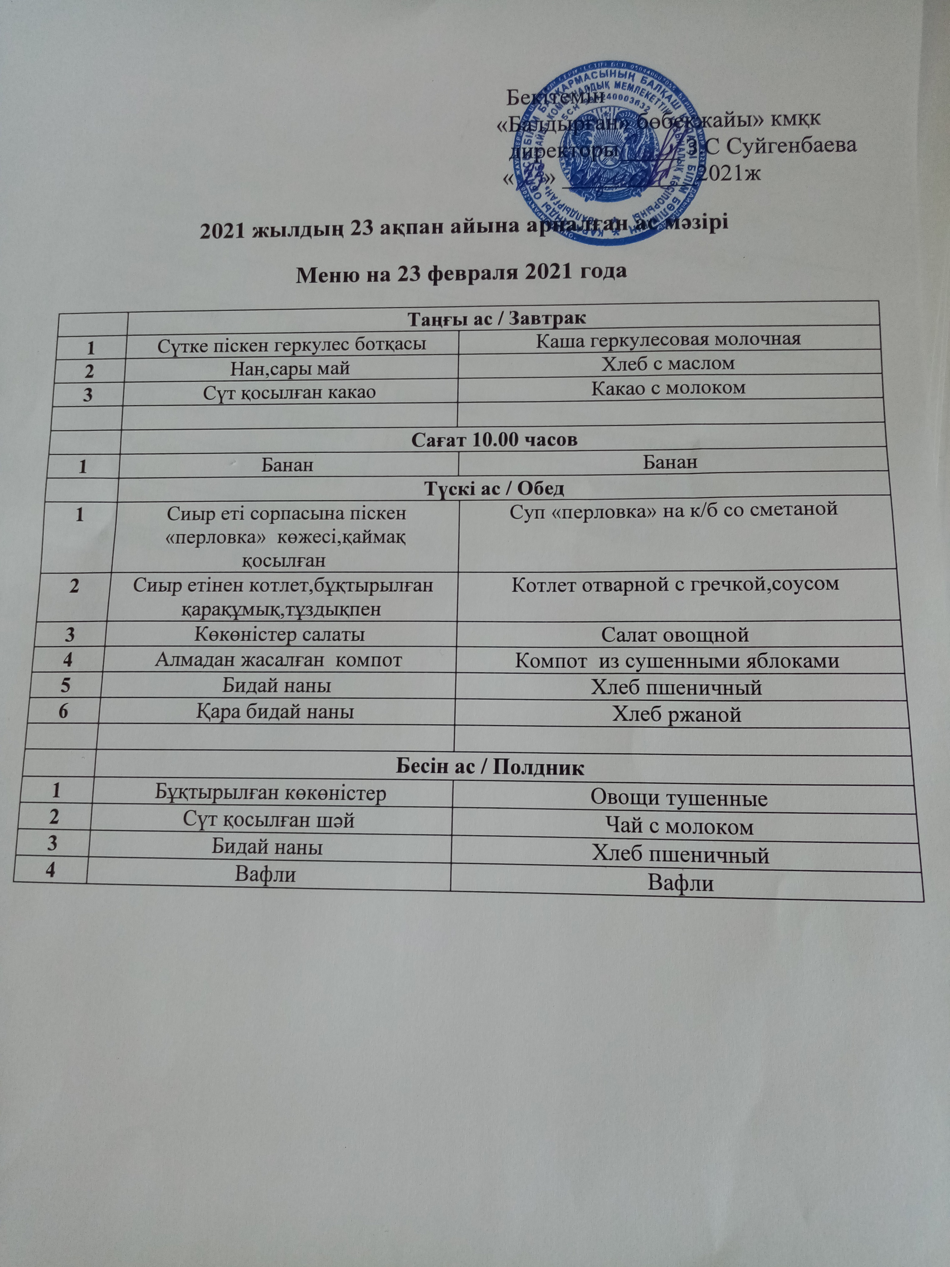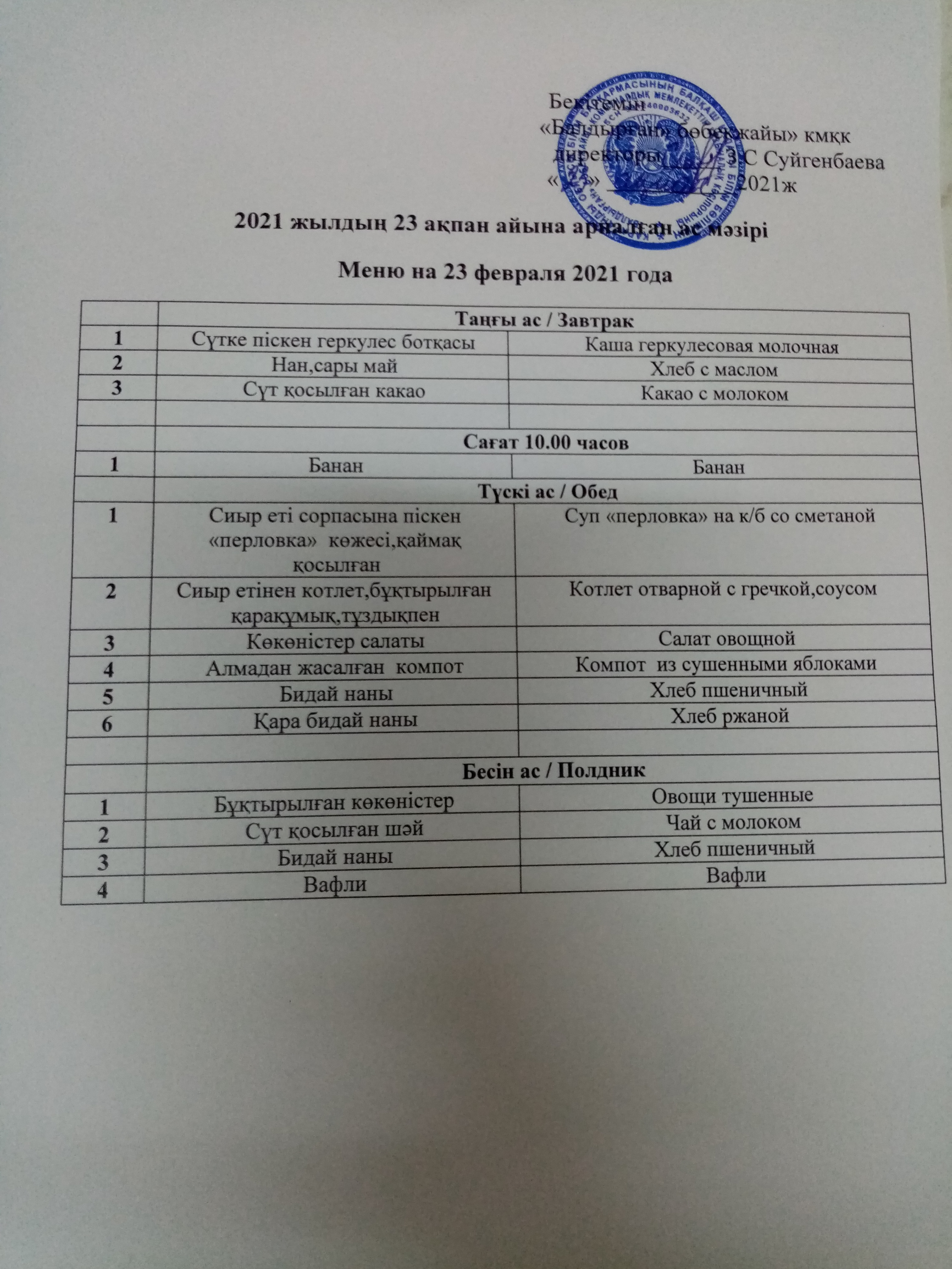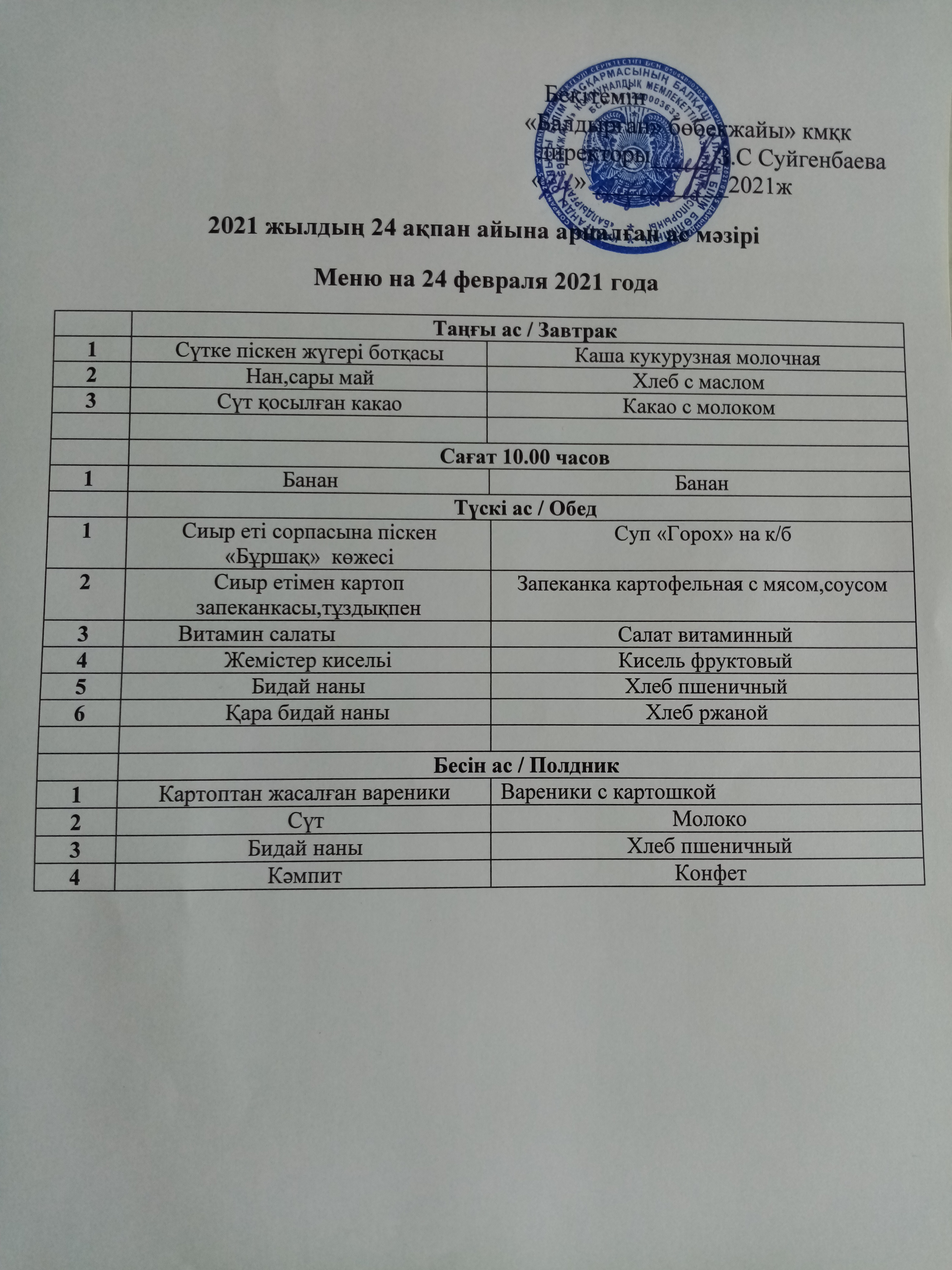 24.02.2021ж2021 жылдың 24 ақпан айына арналған ас мәзірі |