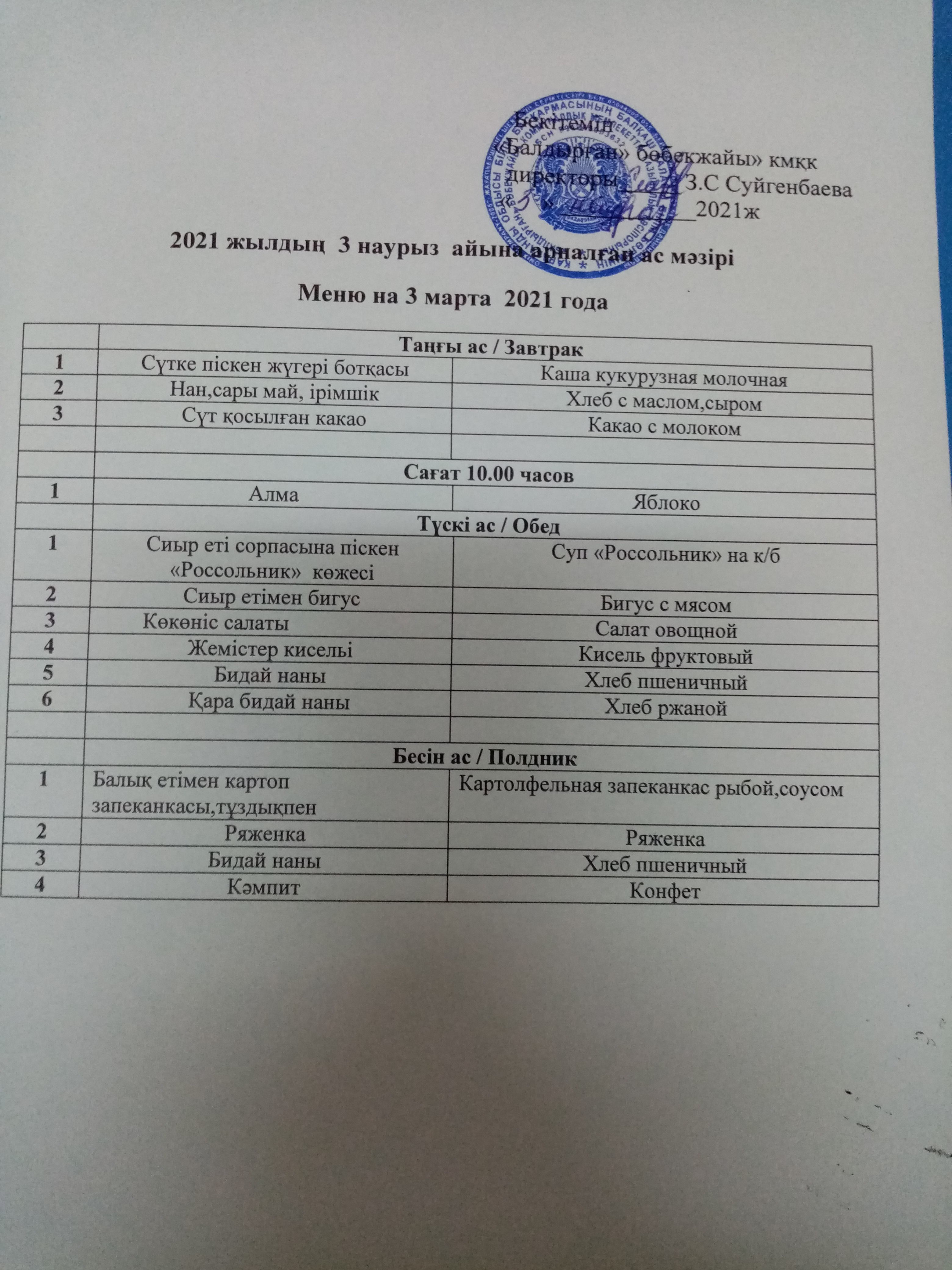 03.03.2021ж2021 жылдың 3 наурыз айына арналған ас мәзірі |