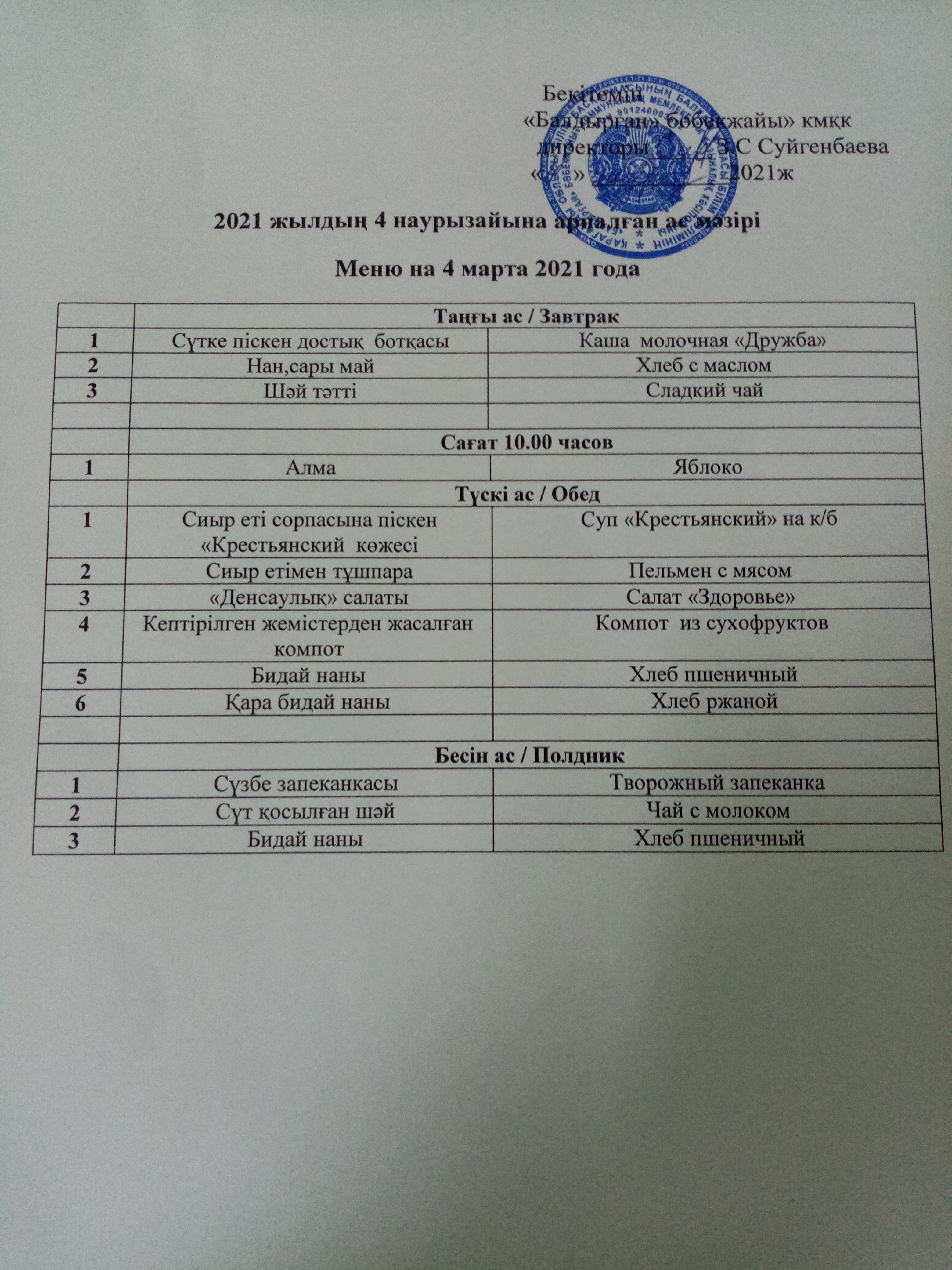 04.03.2021ж2021 жылдың 4 наурыз айына арналған ас мәзірі |