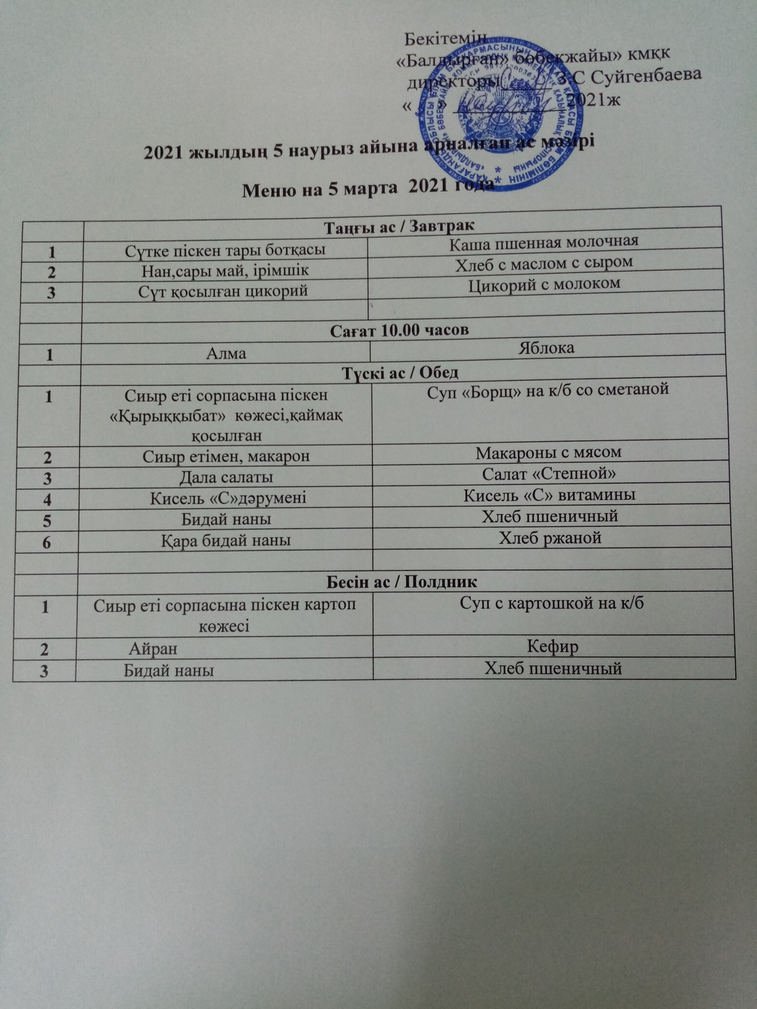 05.03.2021ж2021 жылдың 5 наурыз айына арналған ас мәзірі |