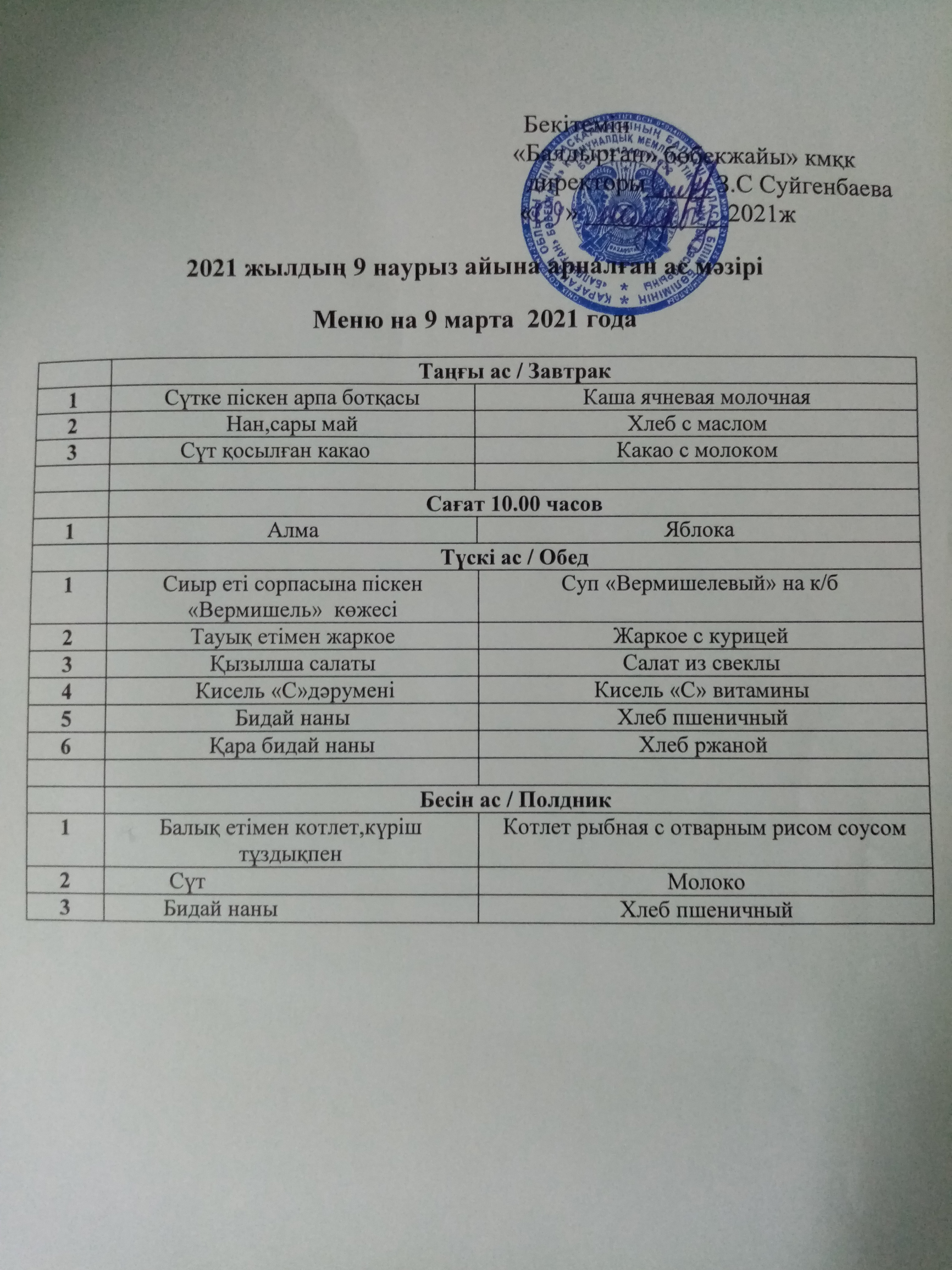 09.03.2021ж2021 жылдың 9 наурыз айына арналған ас мәзірі |