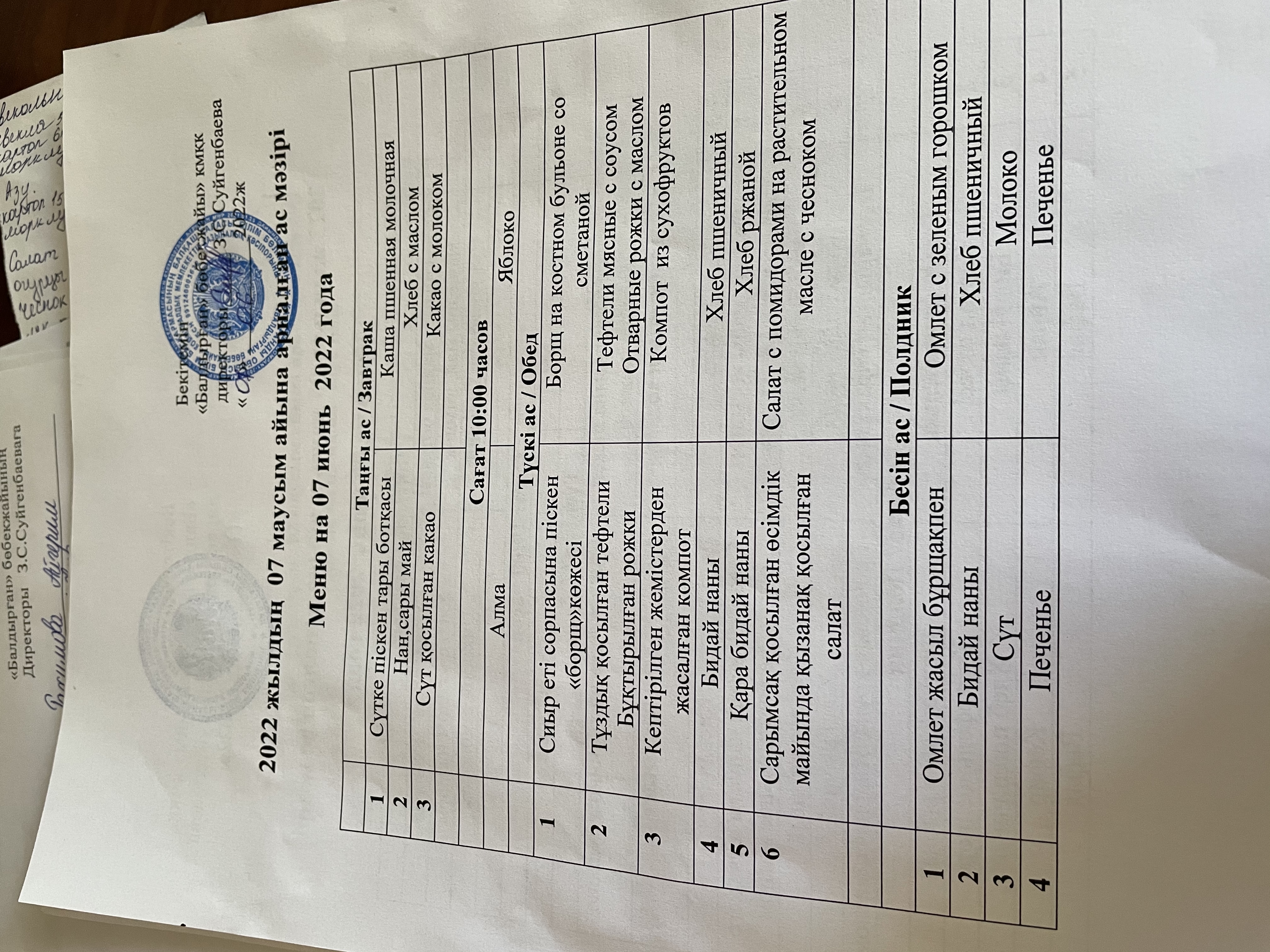 07.06.2022Меню на 07 июнь 2022 года |