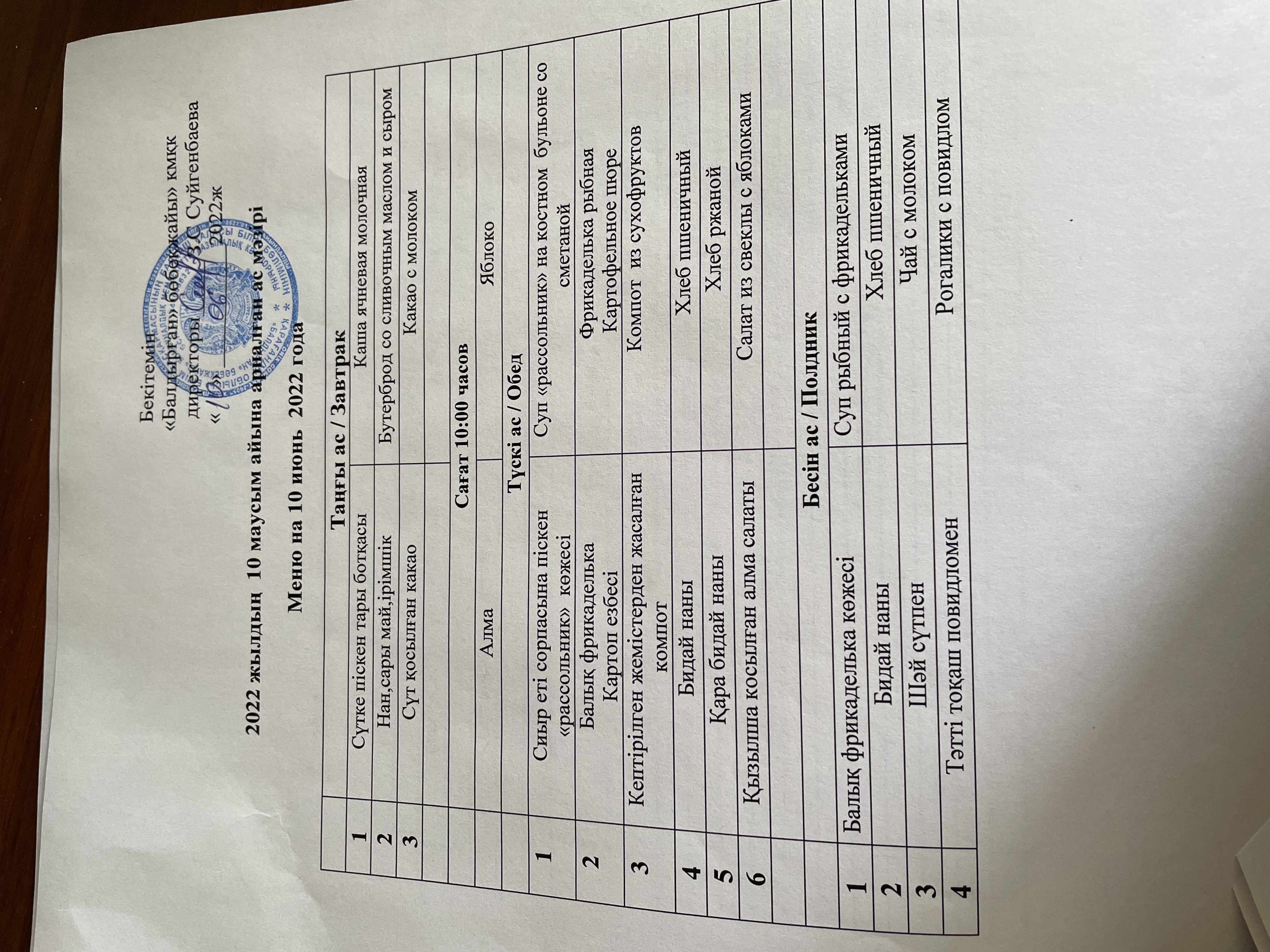 10.06.2022Меню на 10 июнь 2022 года |