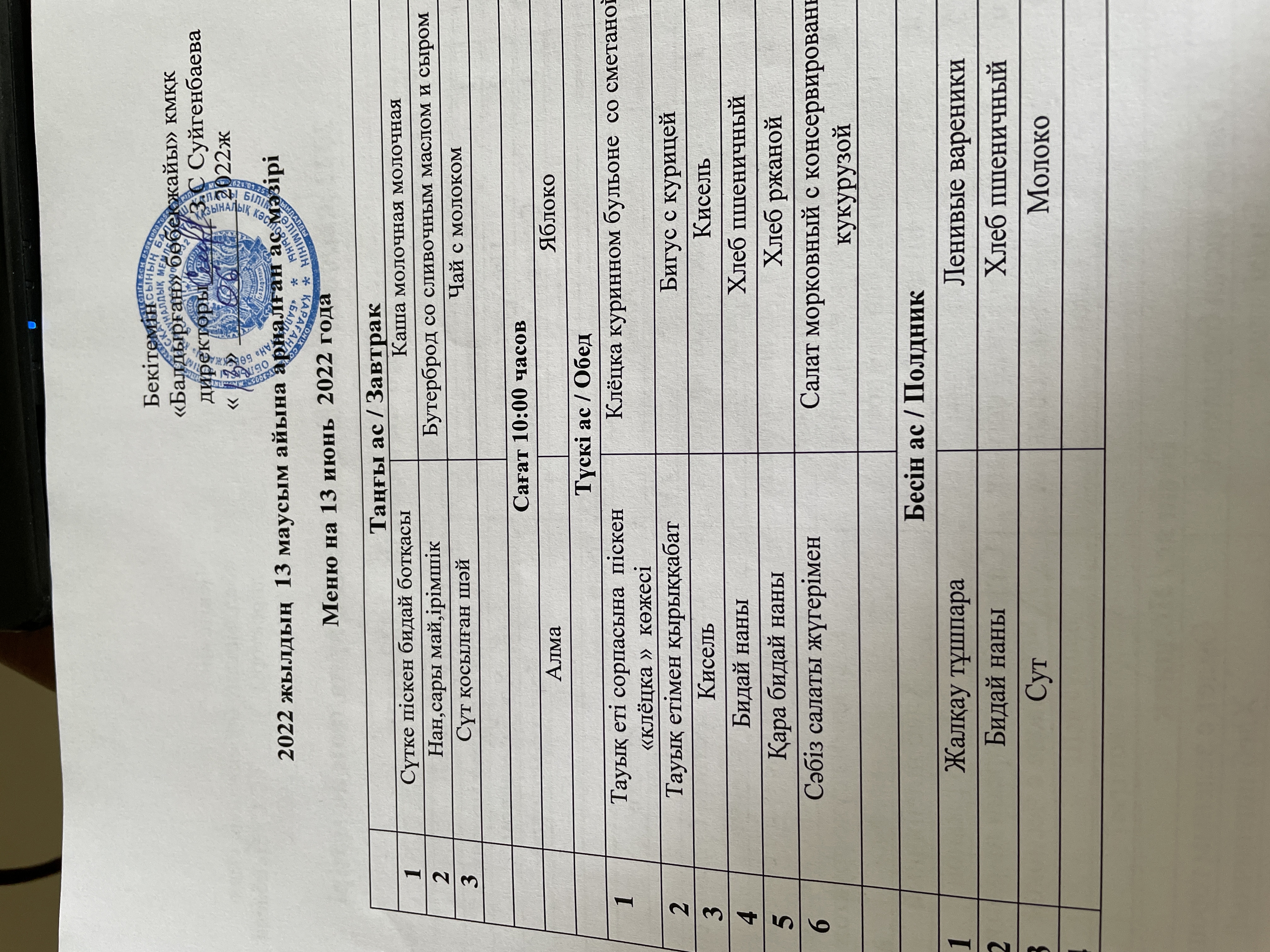 13.06.2022Меню на 13 июнь 2022 года |