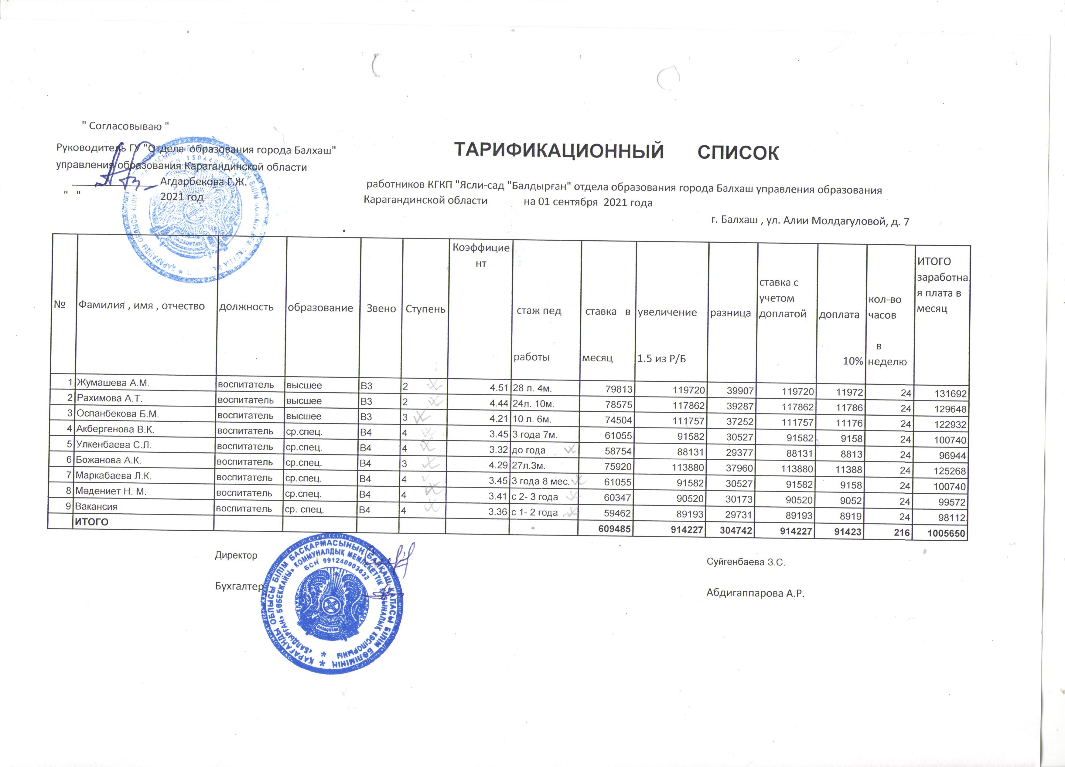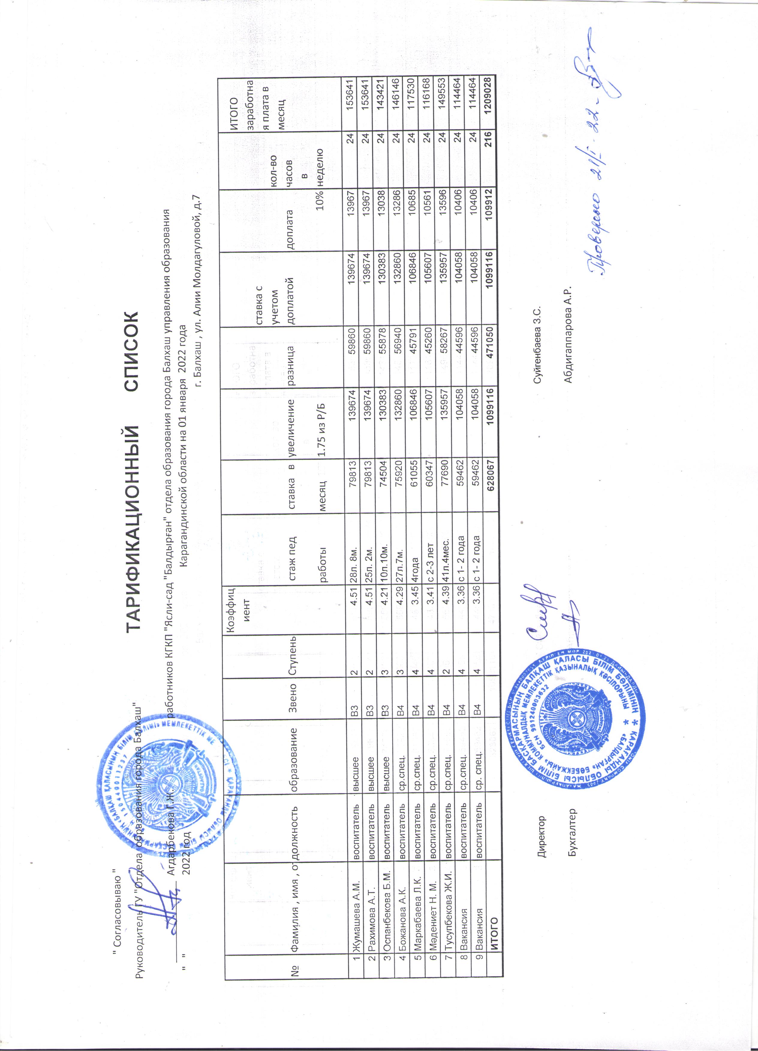 Тарификация тізімі 2022жылТарификация тізімі 2022жыл |