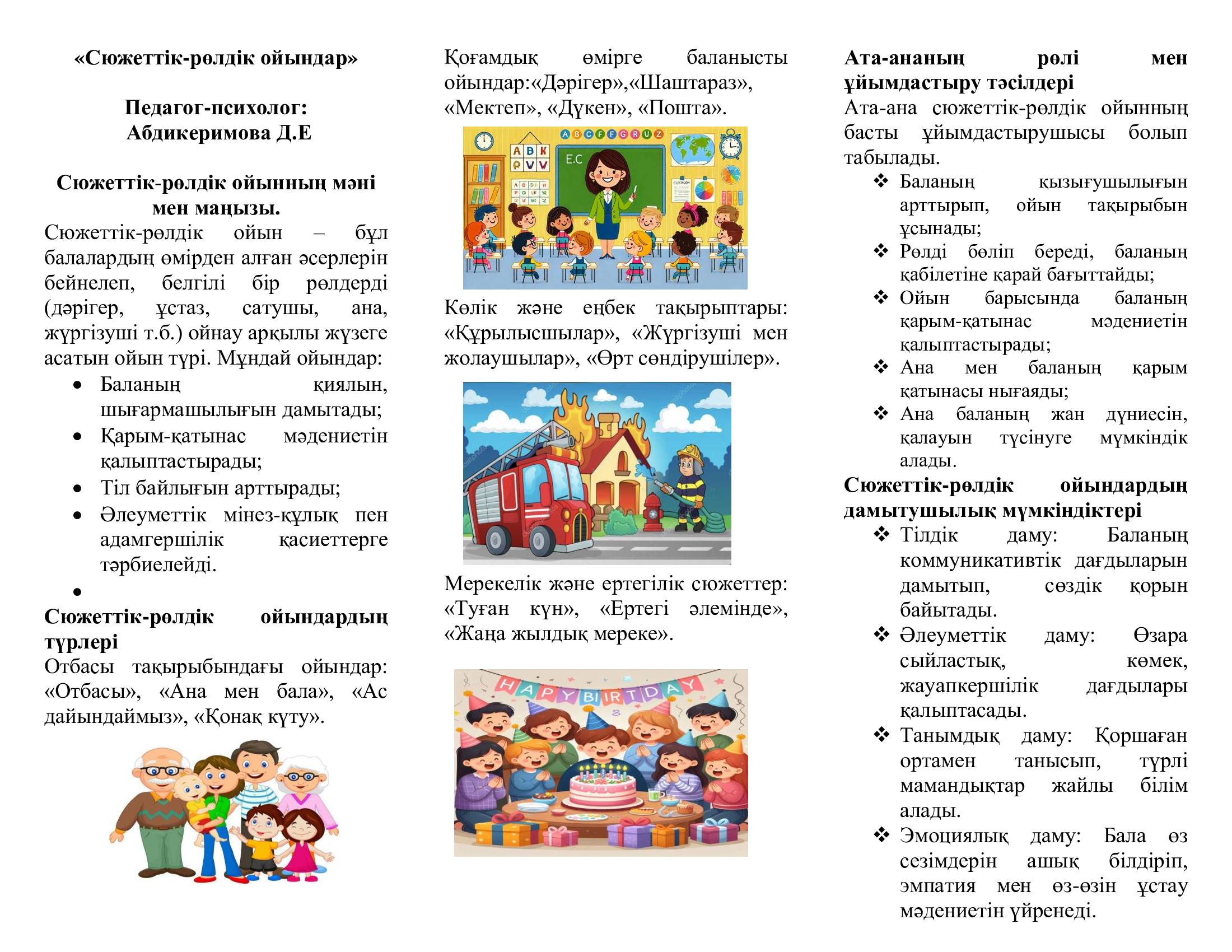 Ата-аналарға кеңес«Сюжеттік-рөлдік ойындар» |