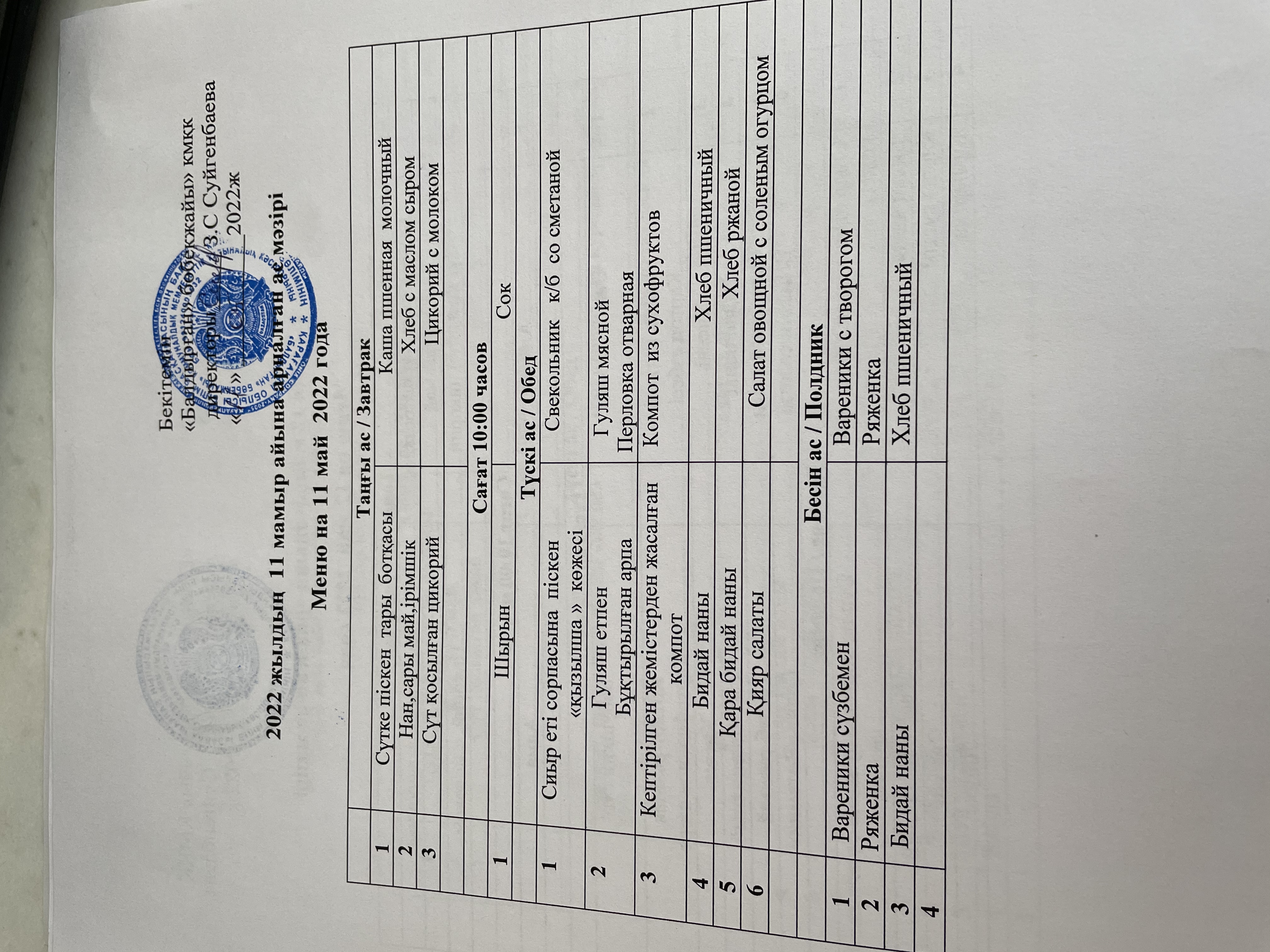 11.05.2022Меню на 11 мая 2022года |