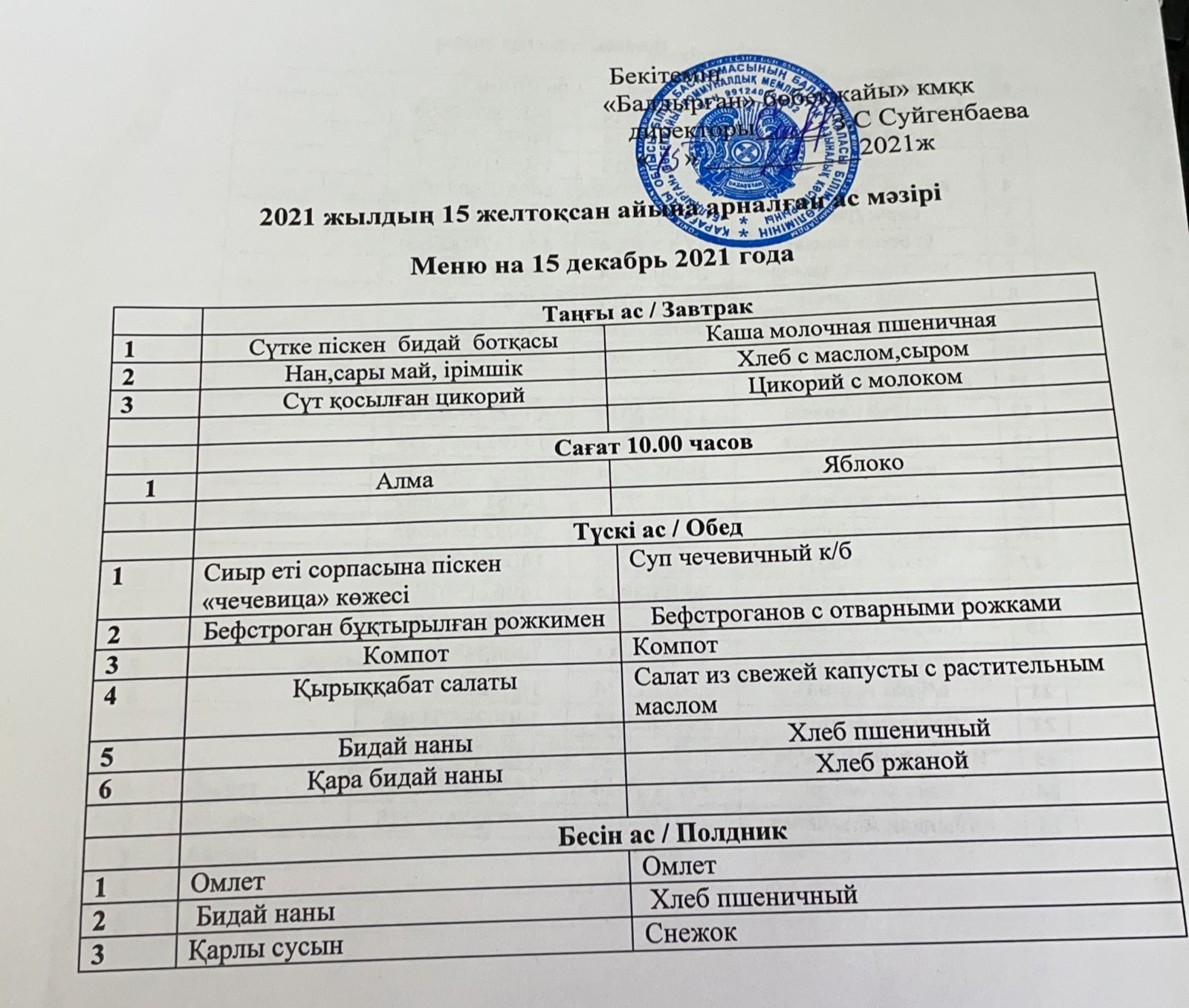 10.12.2021.Меню на 10 декабрь 2021 года |