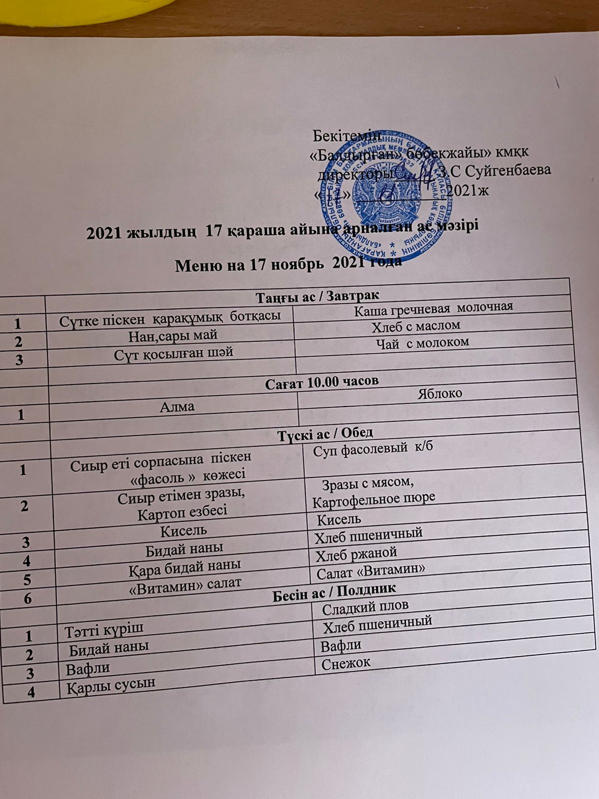 17.11.2021Меню на 17 ноябрь 2021 года |