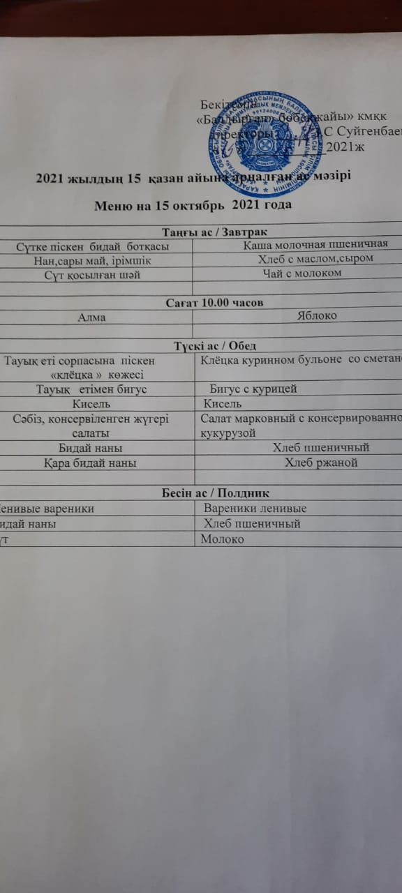 15.10.2021ж2021 жылдың 15 казан айына арналған ас |