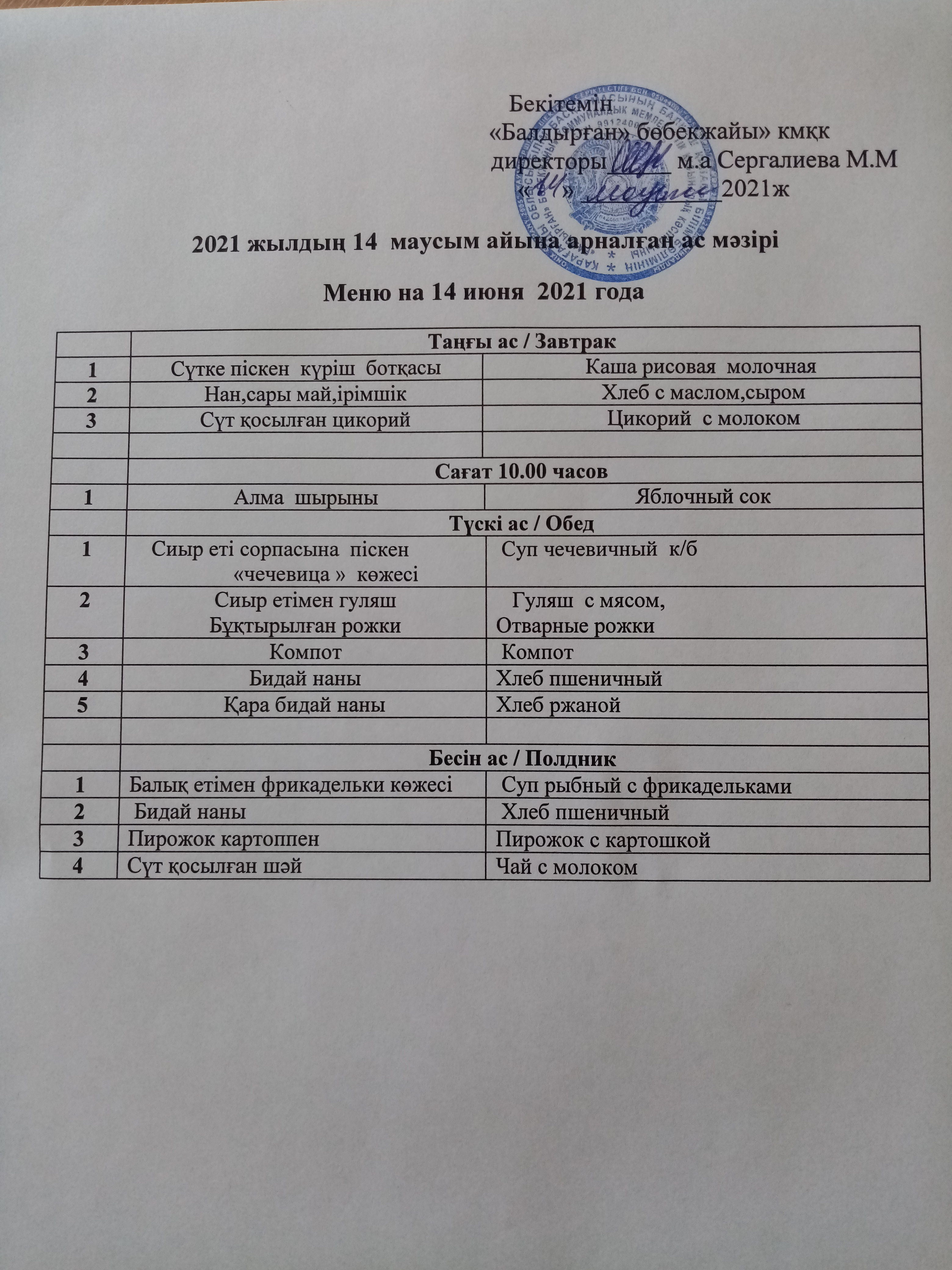 14. 06.2021ж2021 жылдың 14 маусым айына арналған ас |