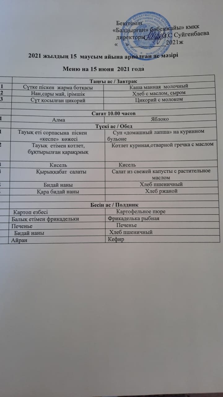 15. 06.2021ж2021 жылдың 15 маусым айына арналған ас |