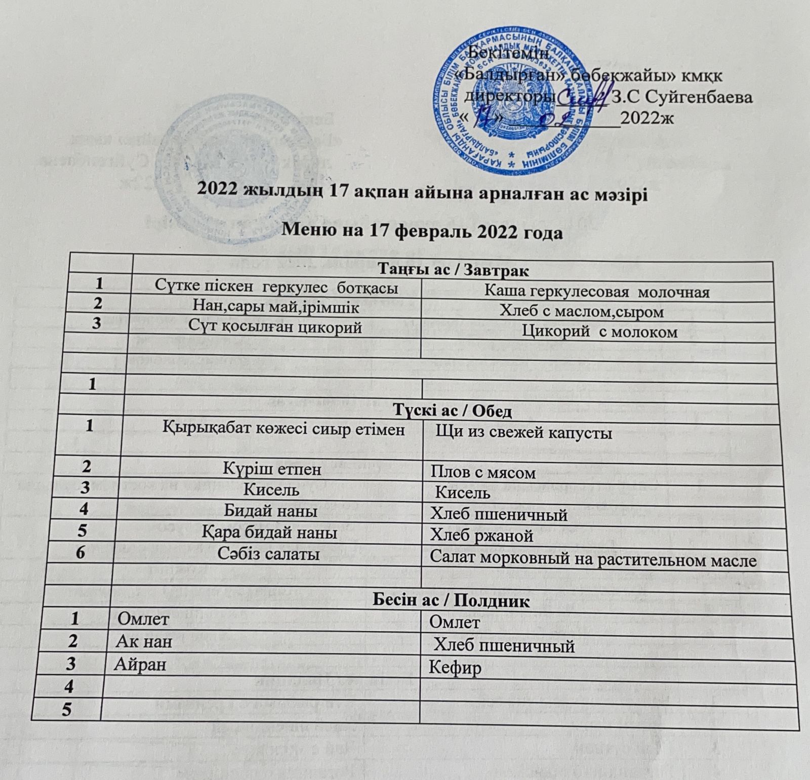 17.02.2022Меню на 17 февраль 2022года |