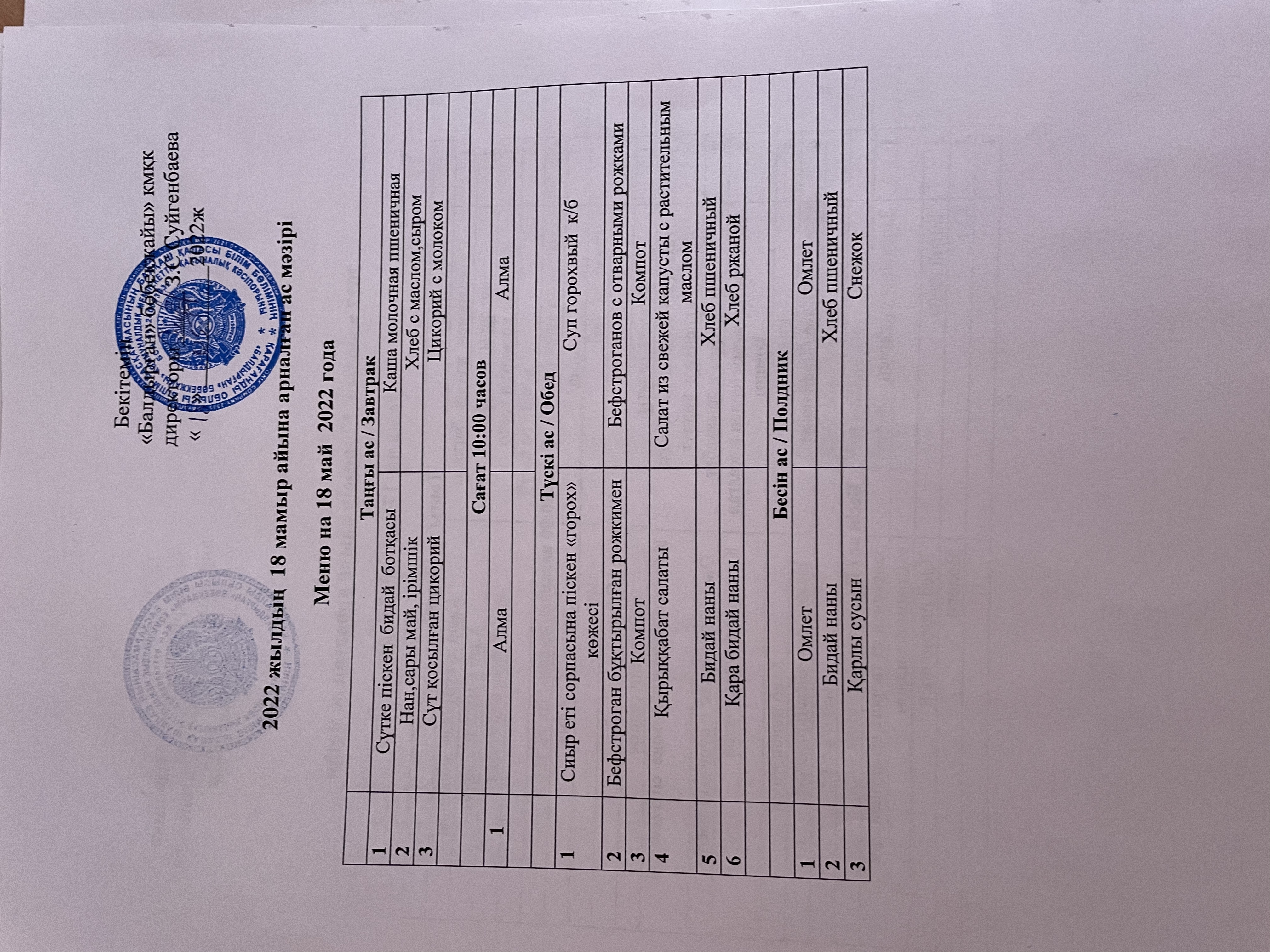 Меню на 18 мая 2022года