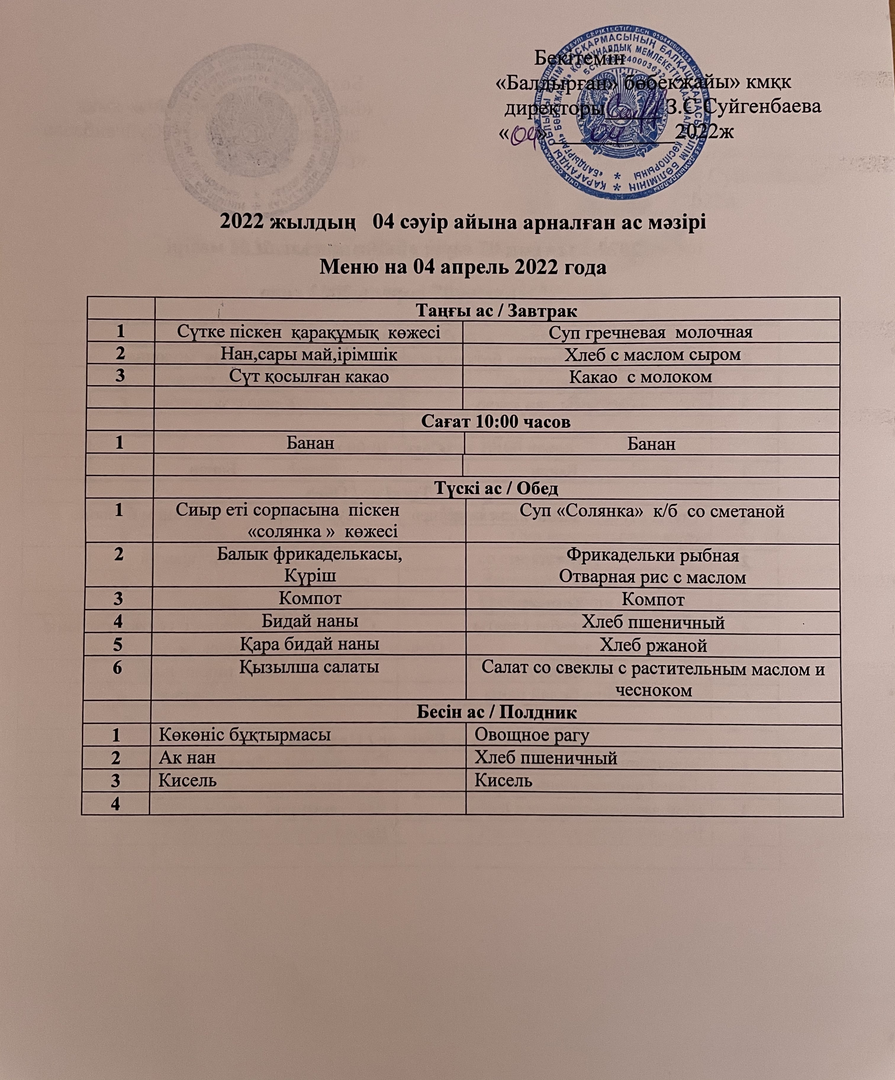 04.04.2022Меню на 04 апрель 2022года |