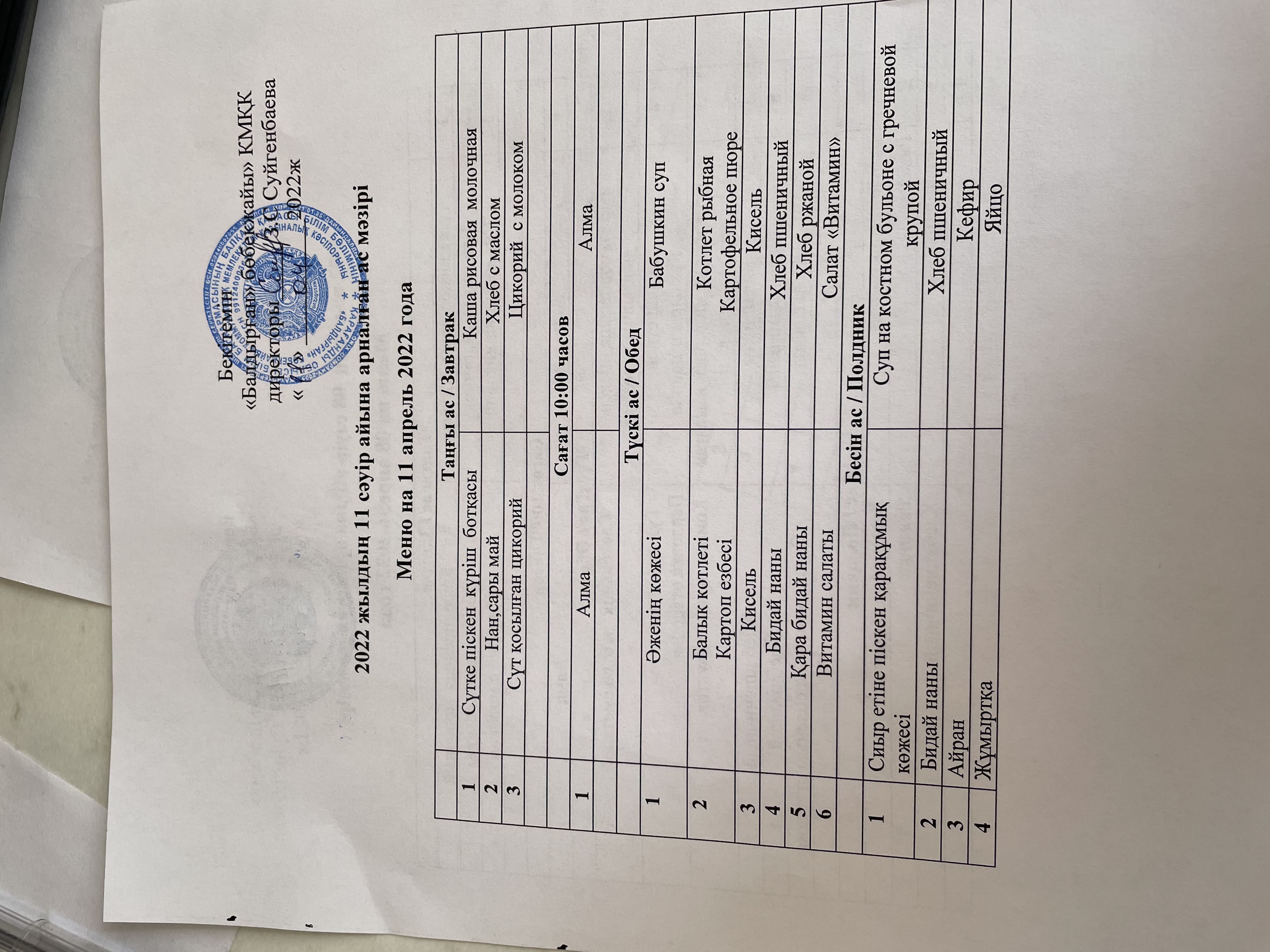 11.04.2022Меню на 11 апрель 2022года |
