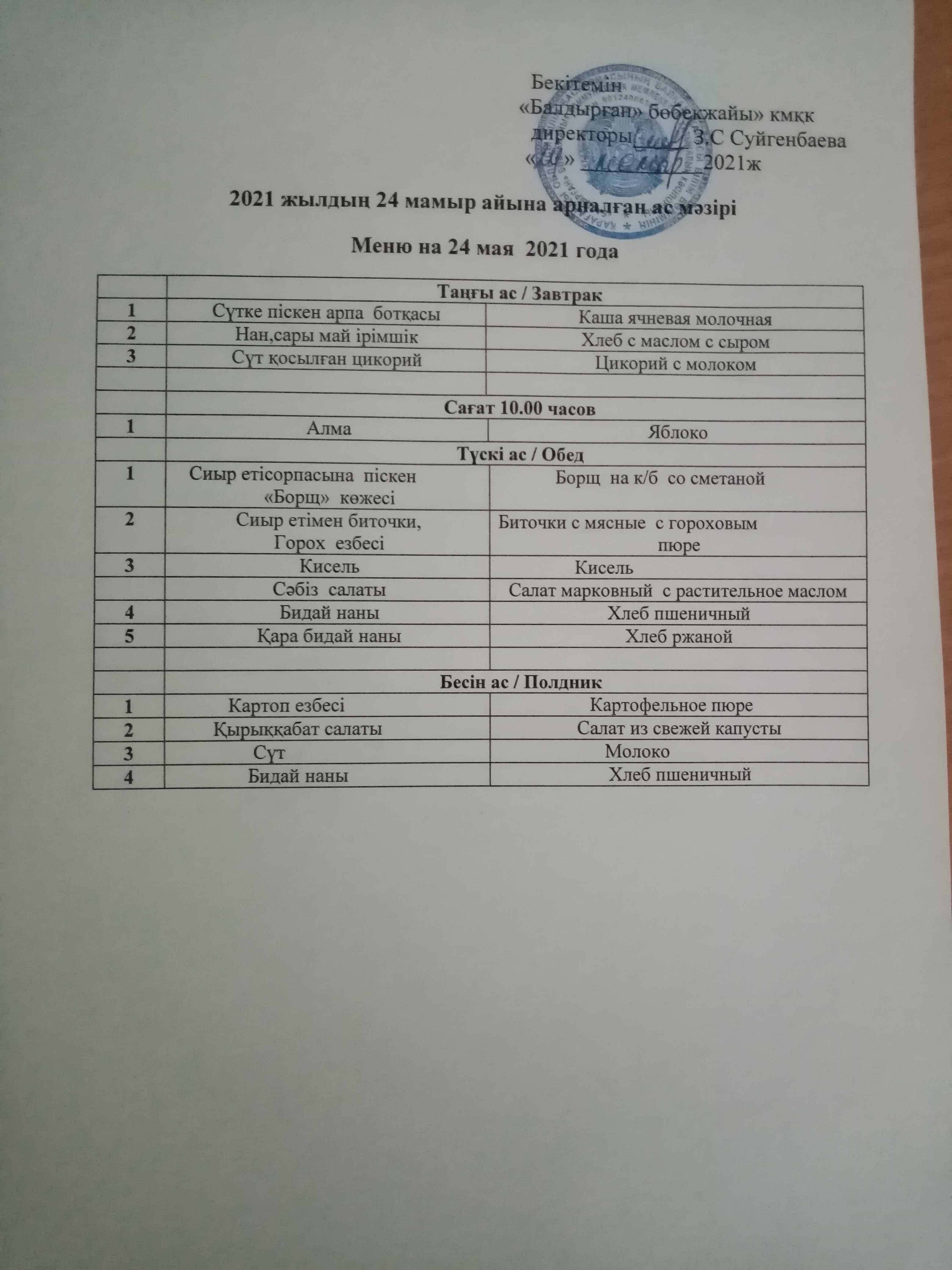 17.05.2021ж2021 жылдың 17 мамыр айына арналған ас мәзірі |