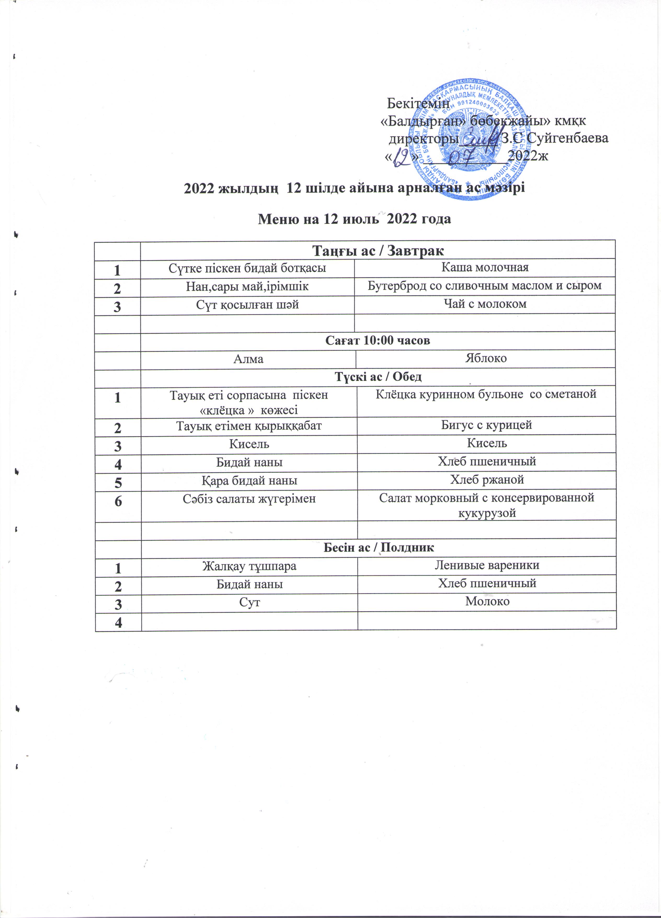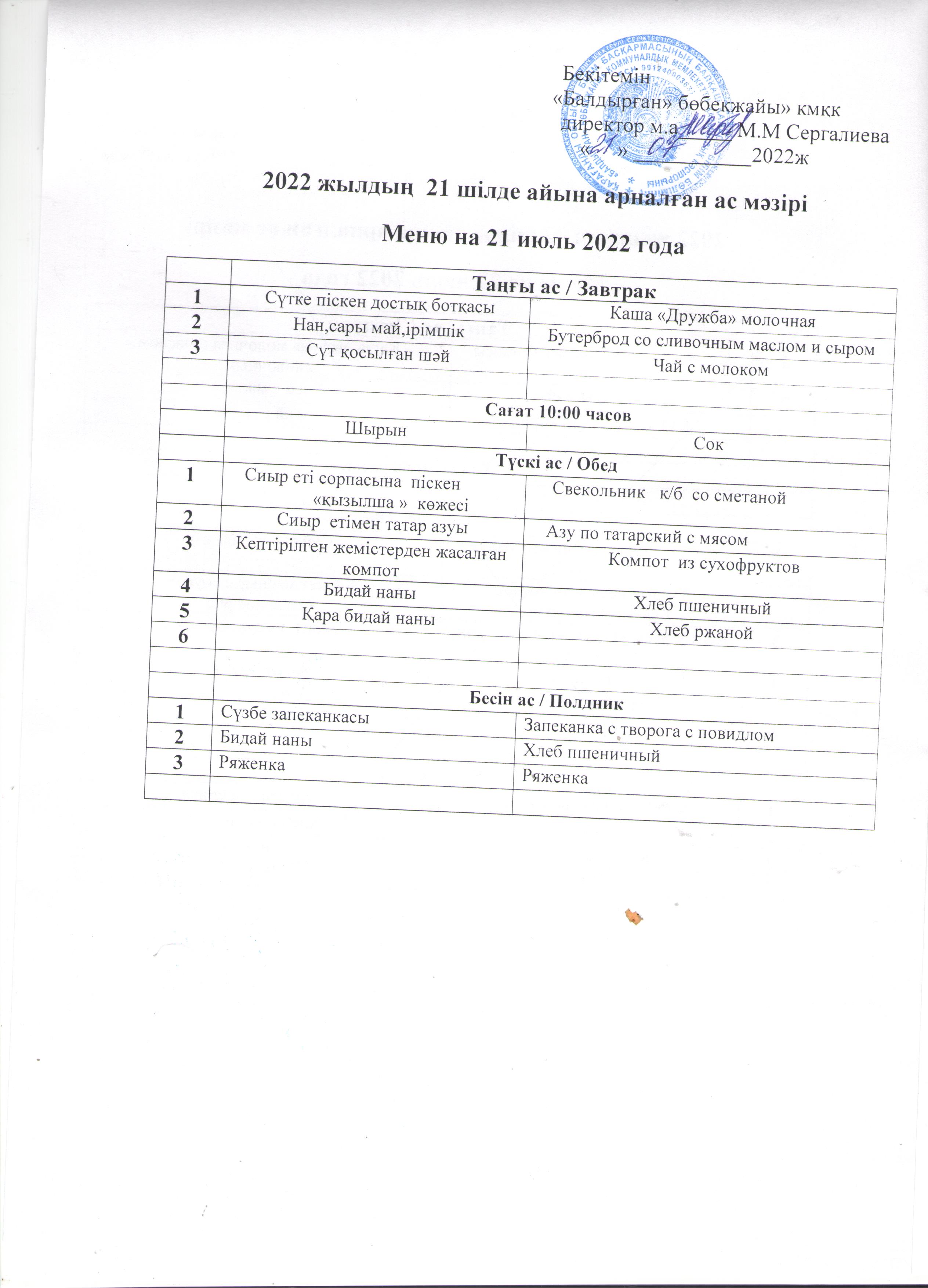 Меню на 07 июль 2022 года