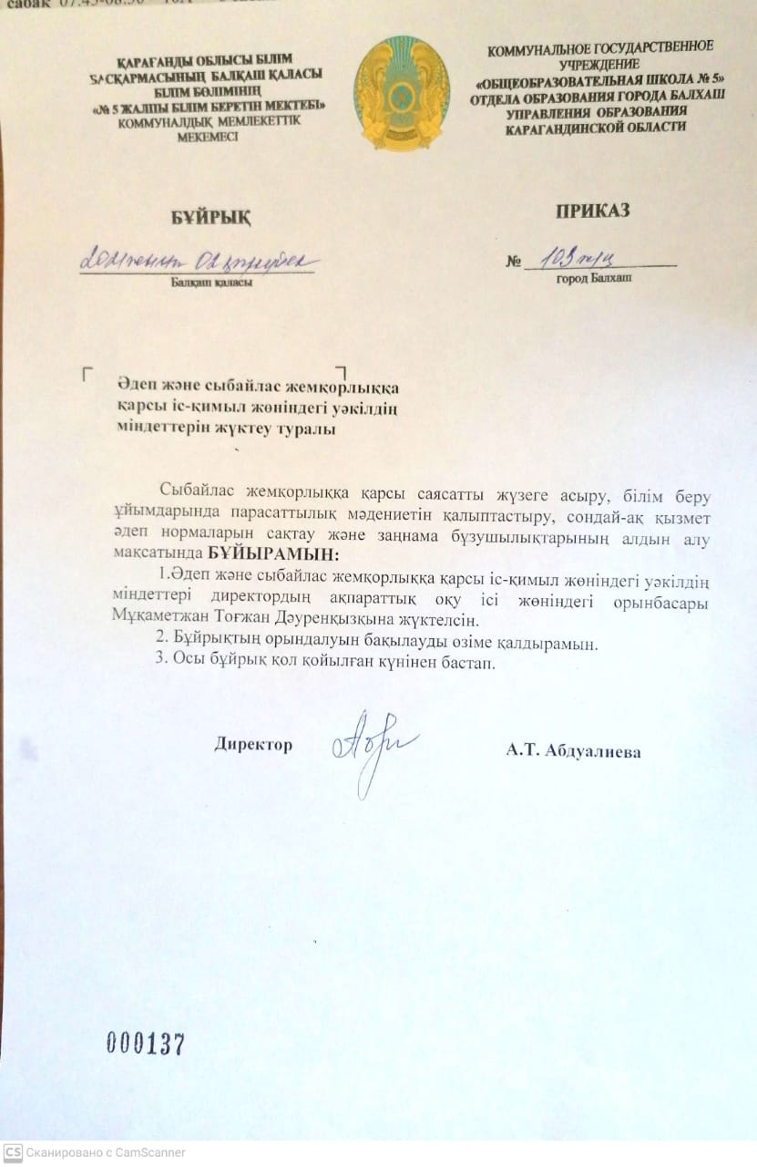 Сыбайлас жемқорлыққа қарсы жауапты тұлғаны тағайындау туралы