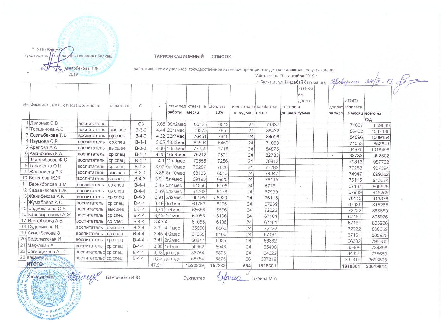 Тарификационный списокТарификационный список |