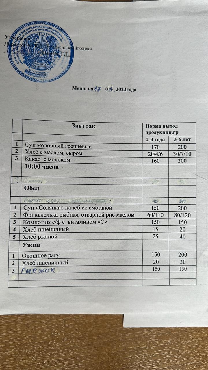 меню 17 .04.2023