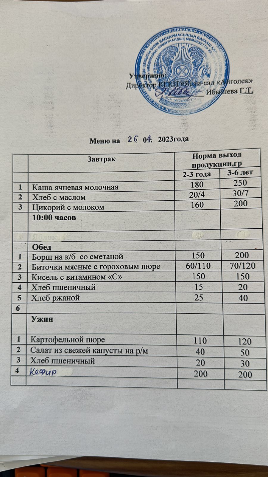 Меню 26.04.2023