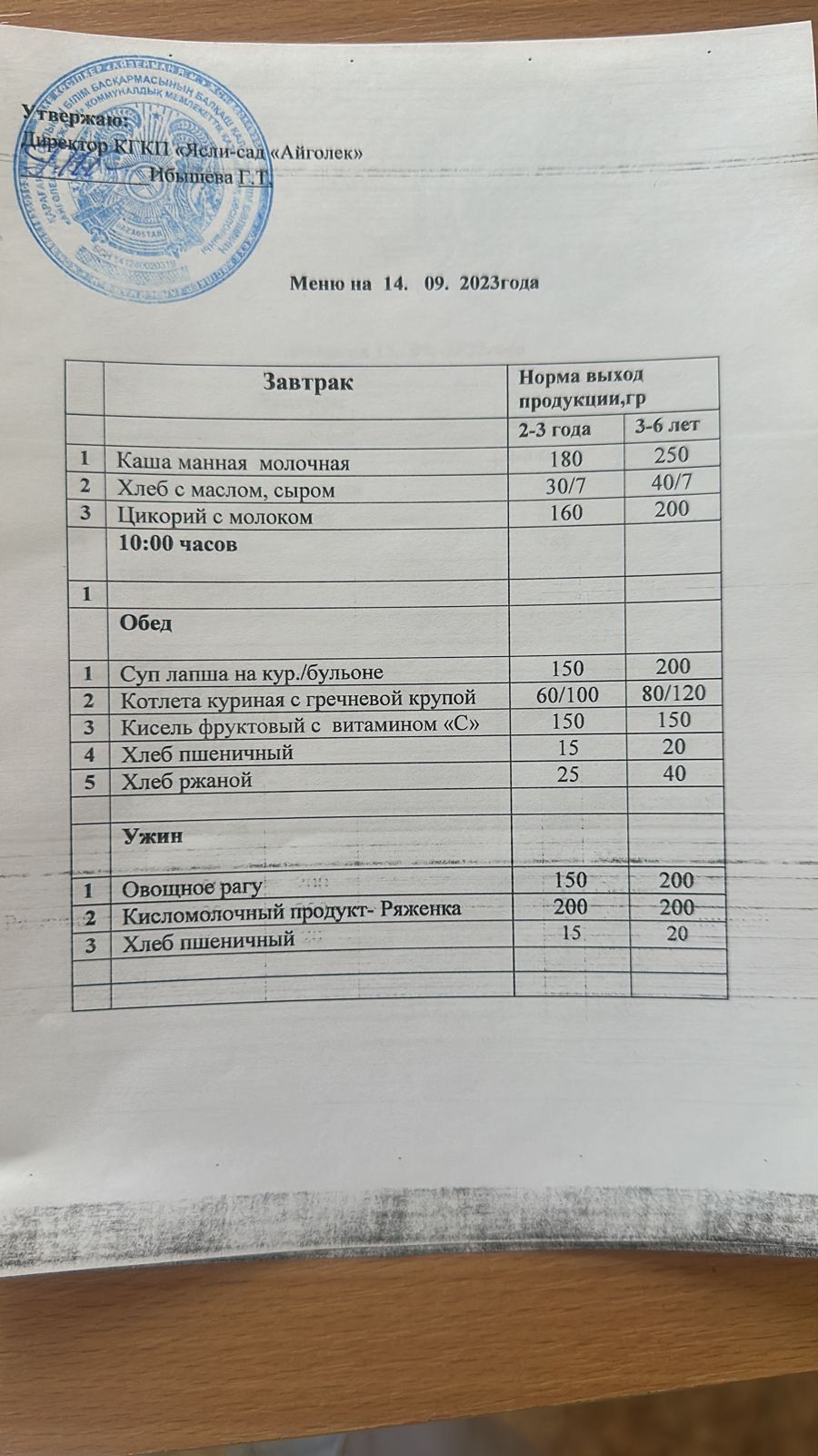 меню 14.09.2023