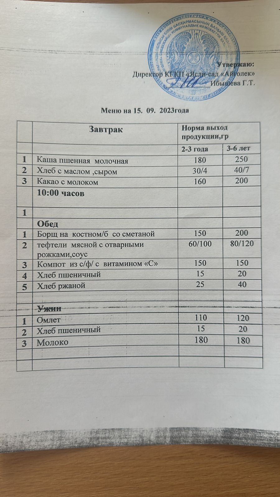 меню 15.09.2023