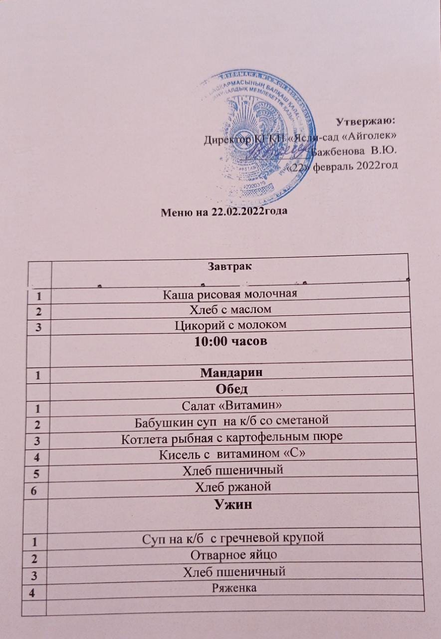 Меню 22.02.2022
