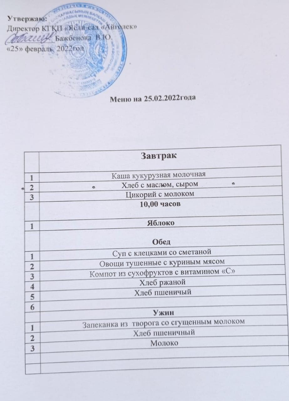 Меню 25.02.2022
