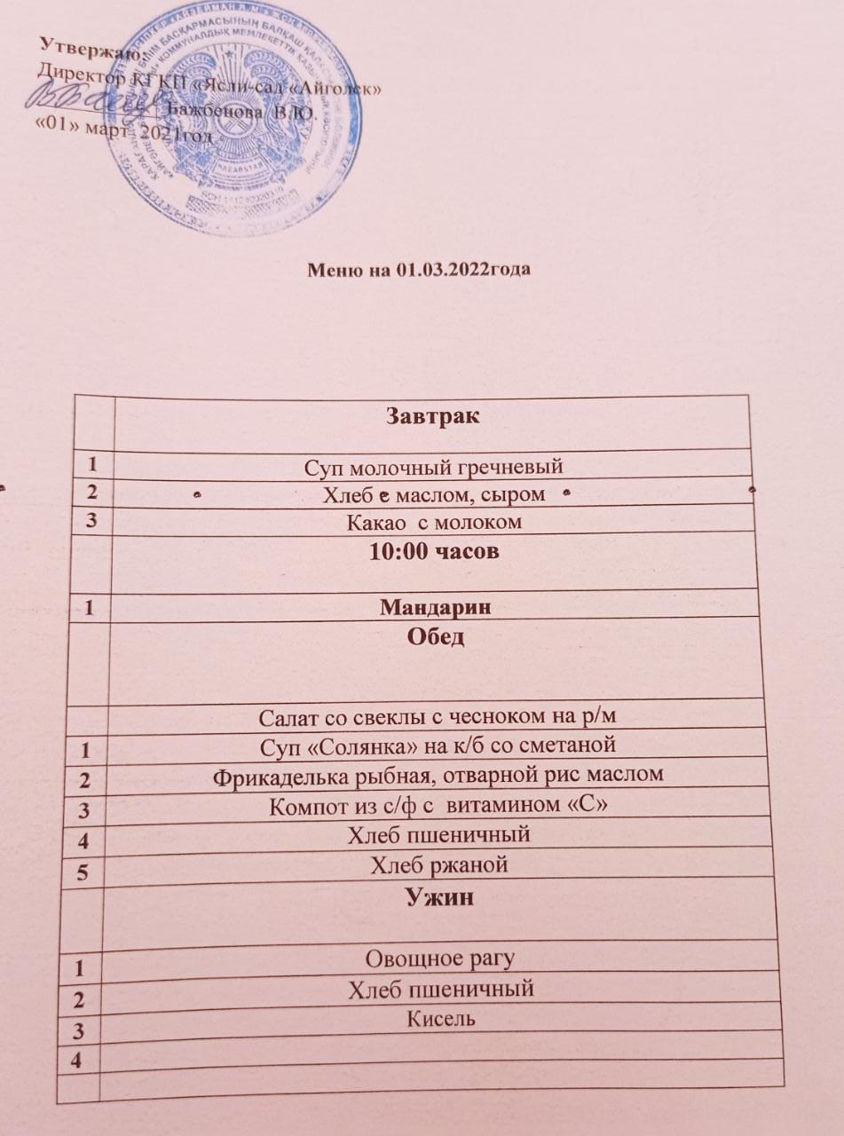 Меню 01.03.2022