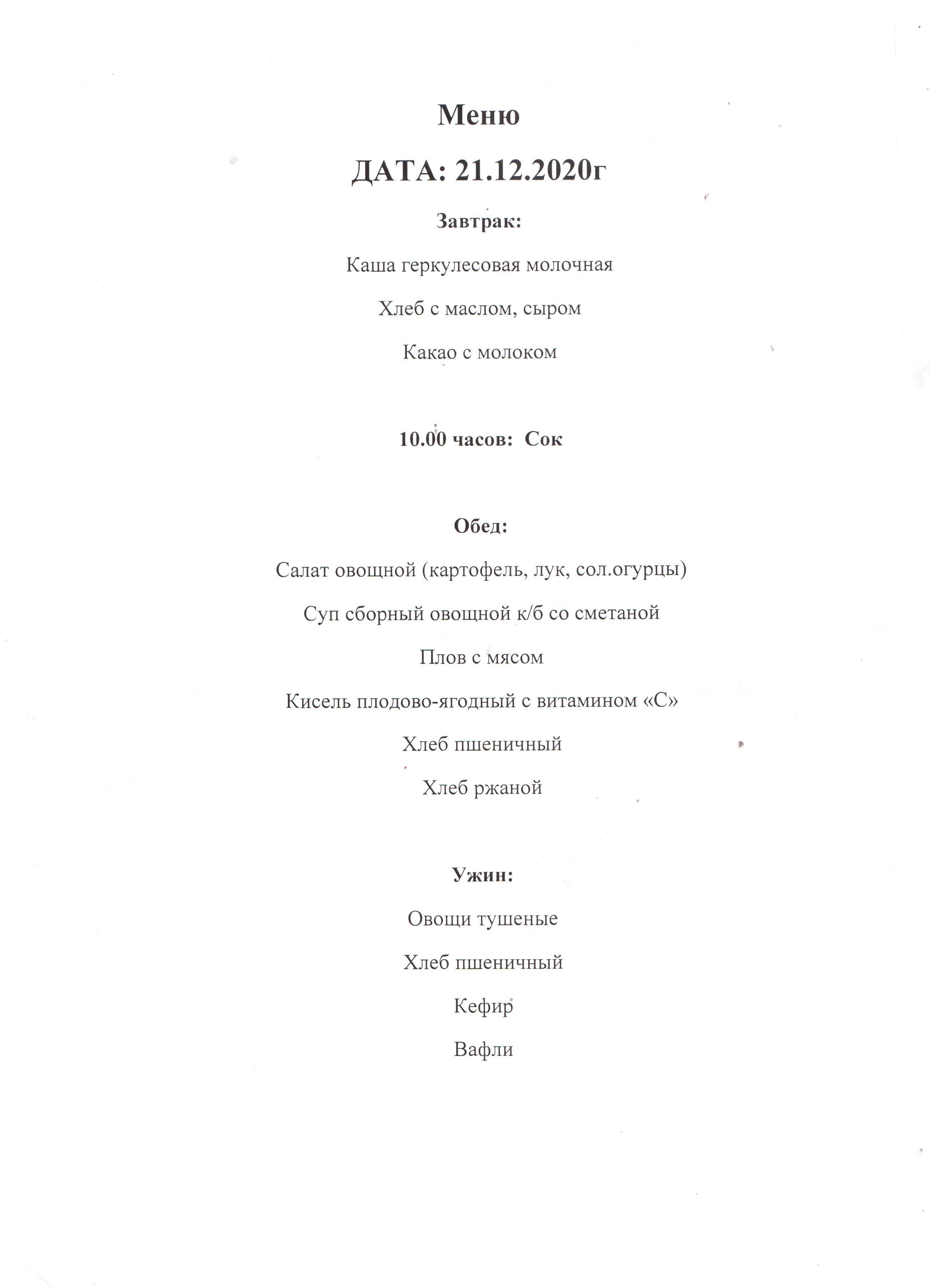 Меню на 21.12.20гМеню на 21.12.20г |