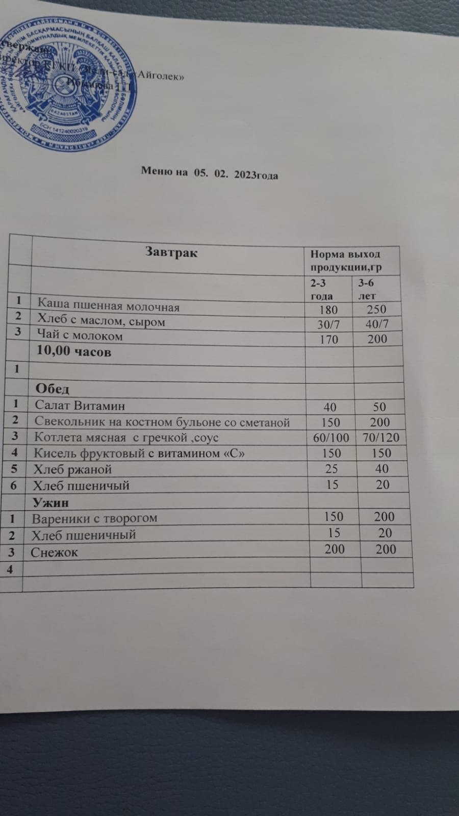 меню 16.01.2024г